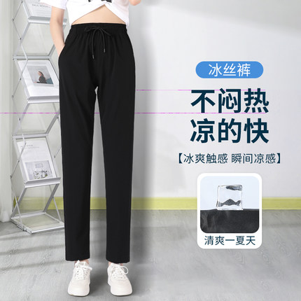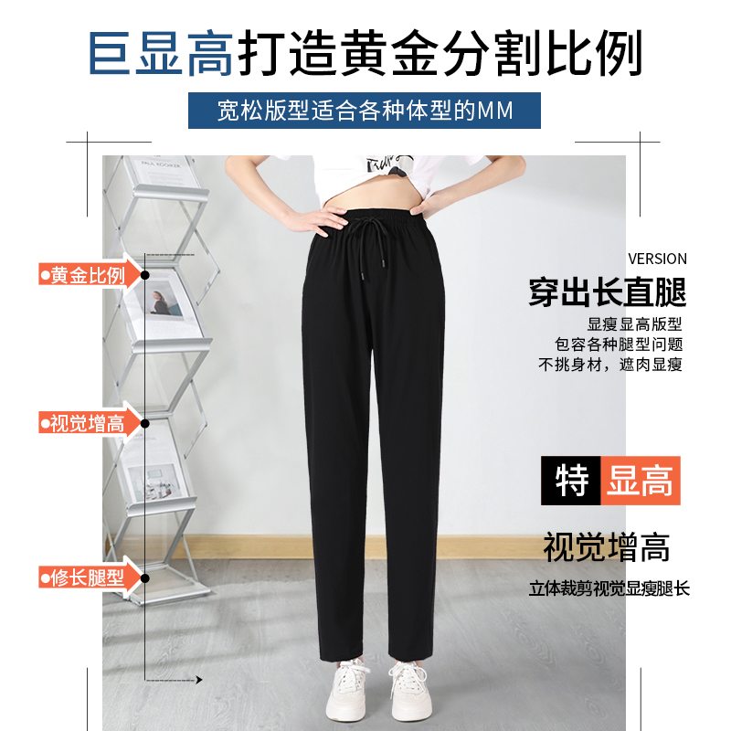 运动裤女冰丝夏季速干收腰大码宽松显瘦长裤瑜伽休闲跑步直筒裤子