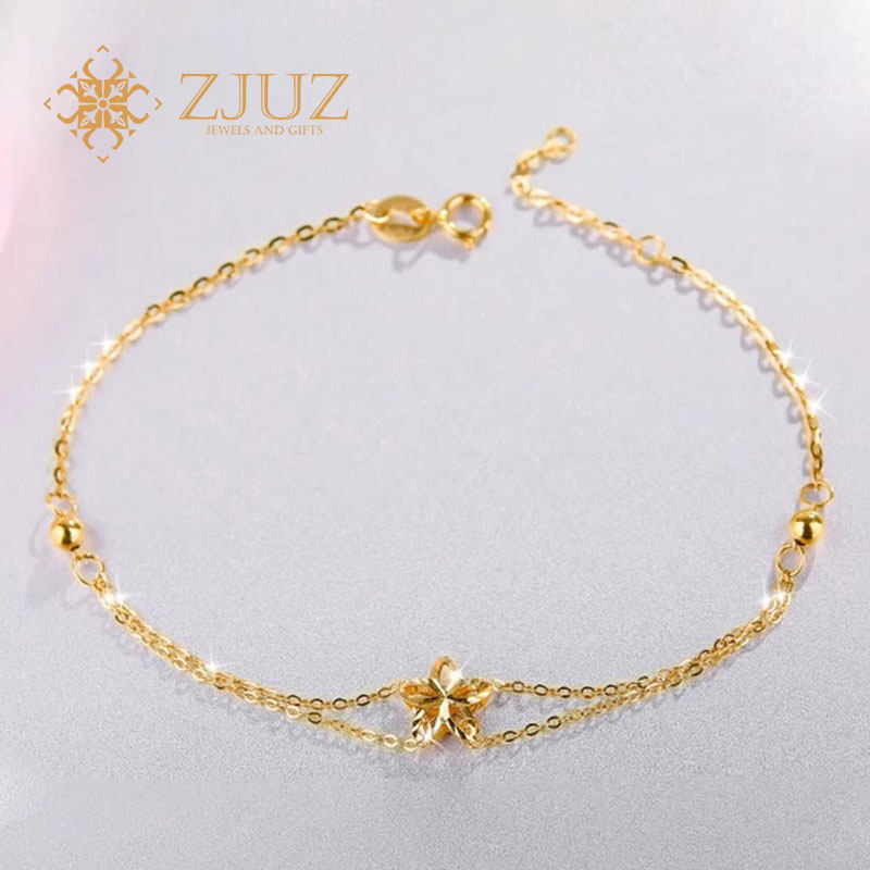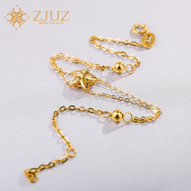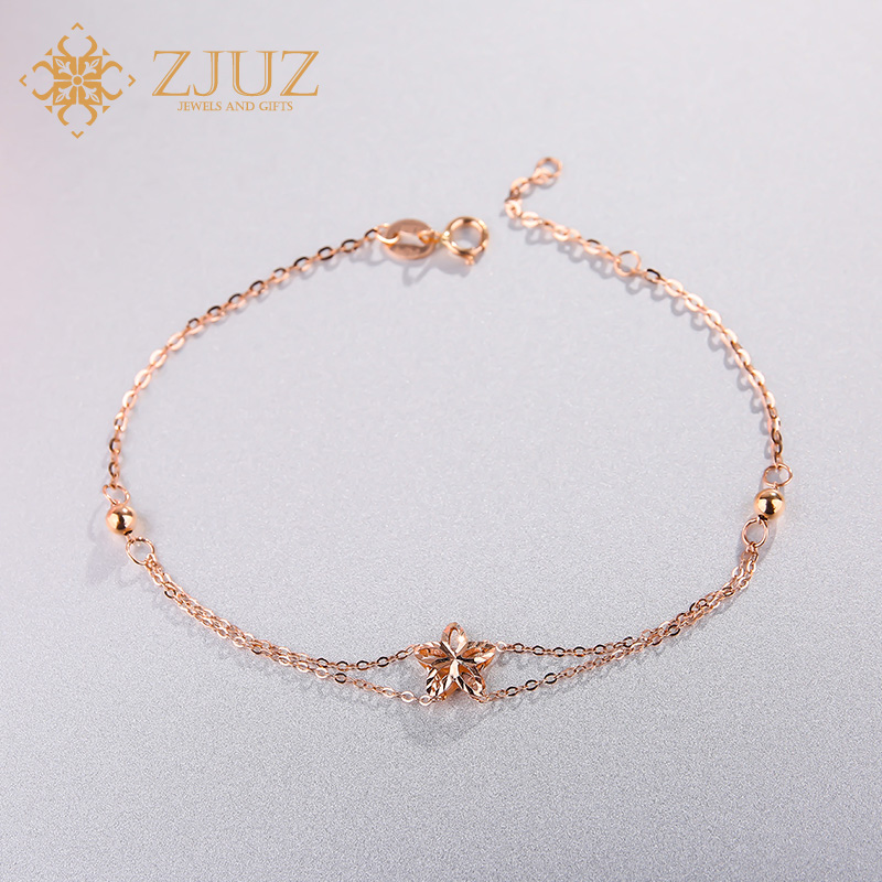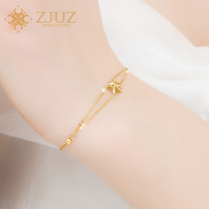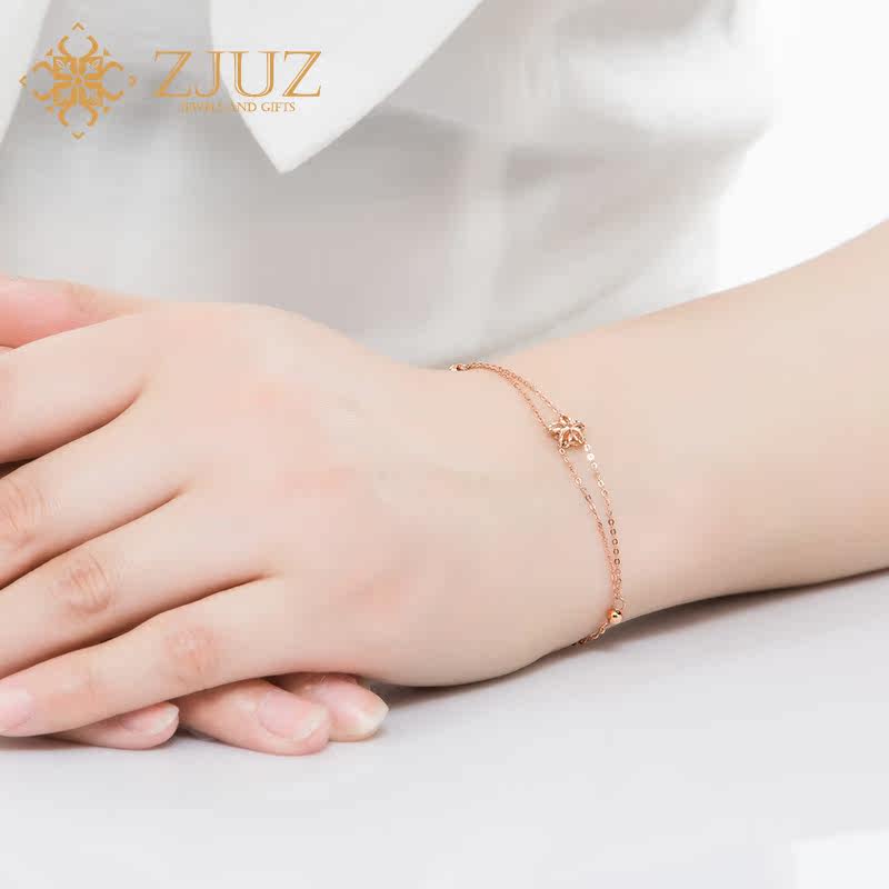 ZJUZ18K玫瑰金手链彩金女士简约时尚AU750双层樱花手镯支持刻字