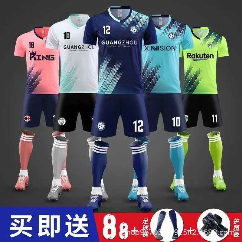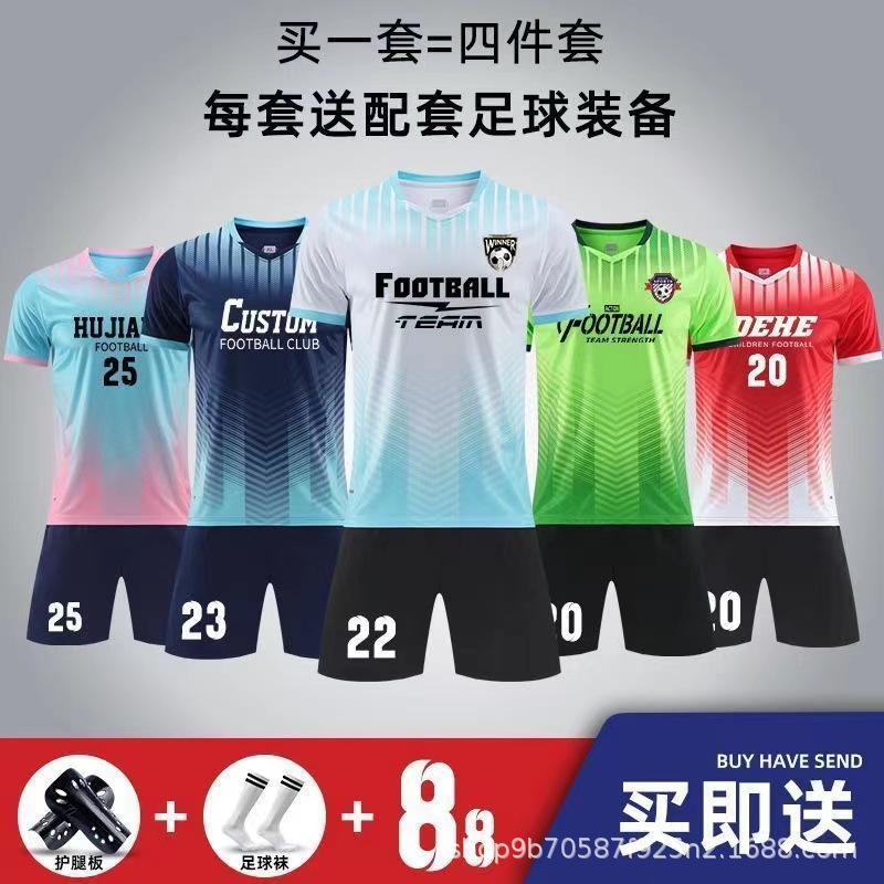 厂家直销-成人儿童足球训练服套装团购印字号透气速干球衣男女