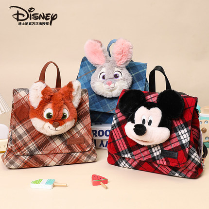 迪士尼正版授权米奇毛绒双肩包斜挎包可爱朱迪尼克单肩包玩偶包女