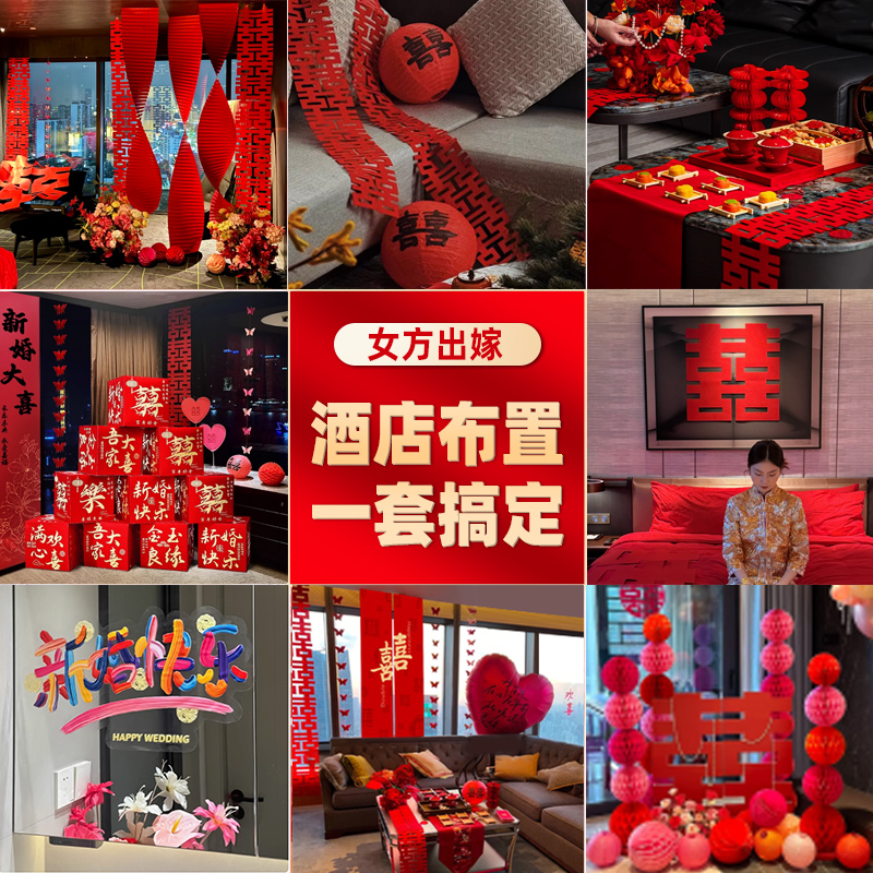 结婚酒店专用婚房客厅全套装氛围感布置婚礼女方出嫁接亲高级装饰