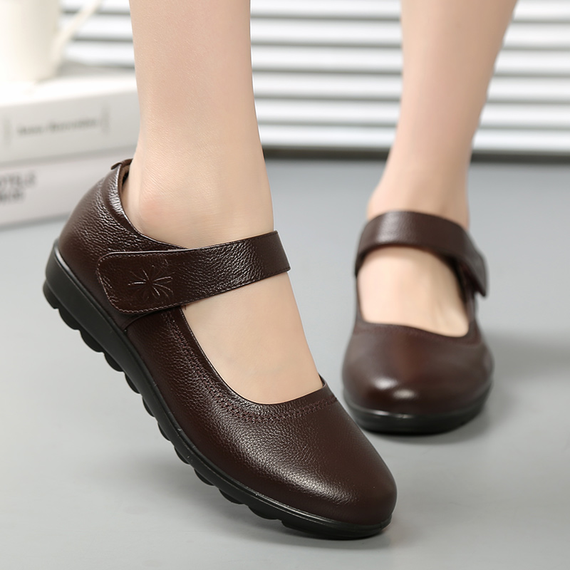 织丽中老年女鞋春夏款单鞋平底防滑妈妈皮鞋真皮软底老人鞋女34码