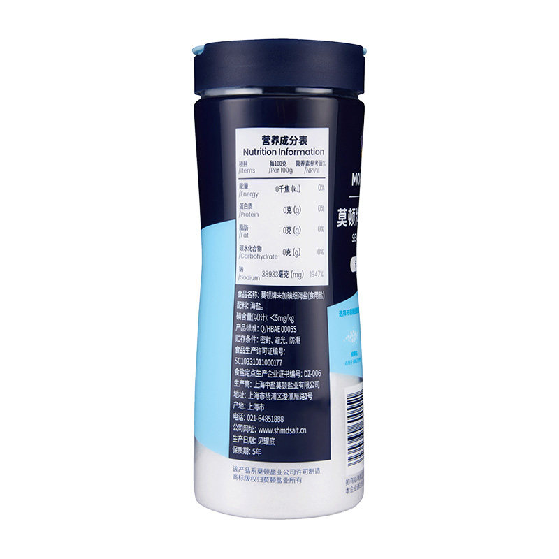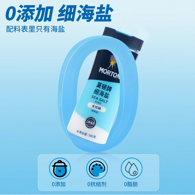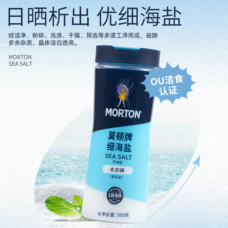 中盐莫顿 无碘细海盐500g家用瓶装 未加碘无抗结剂食用烘焙牛排盐