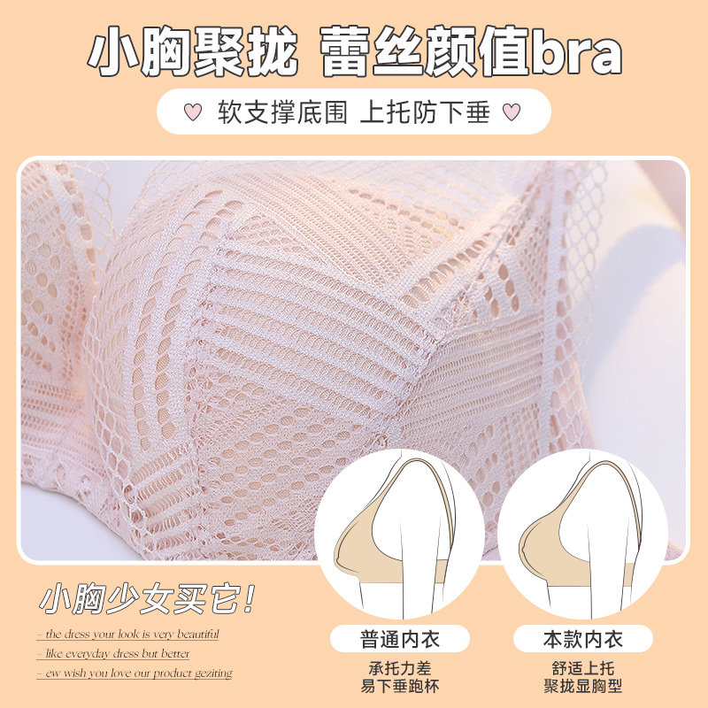 爱黛小胸聚拢内衣少女厚杯舒适无钢圈调整型性感蕾丝文胸罩A6686A