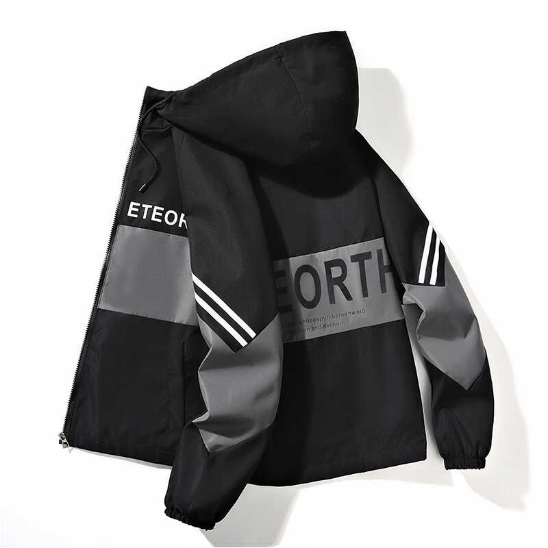 春秋薄款男士连帽休闲夹克外套百搭青少年男孩上衣初高中学生褂子