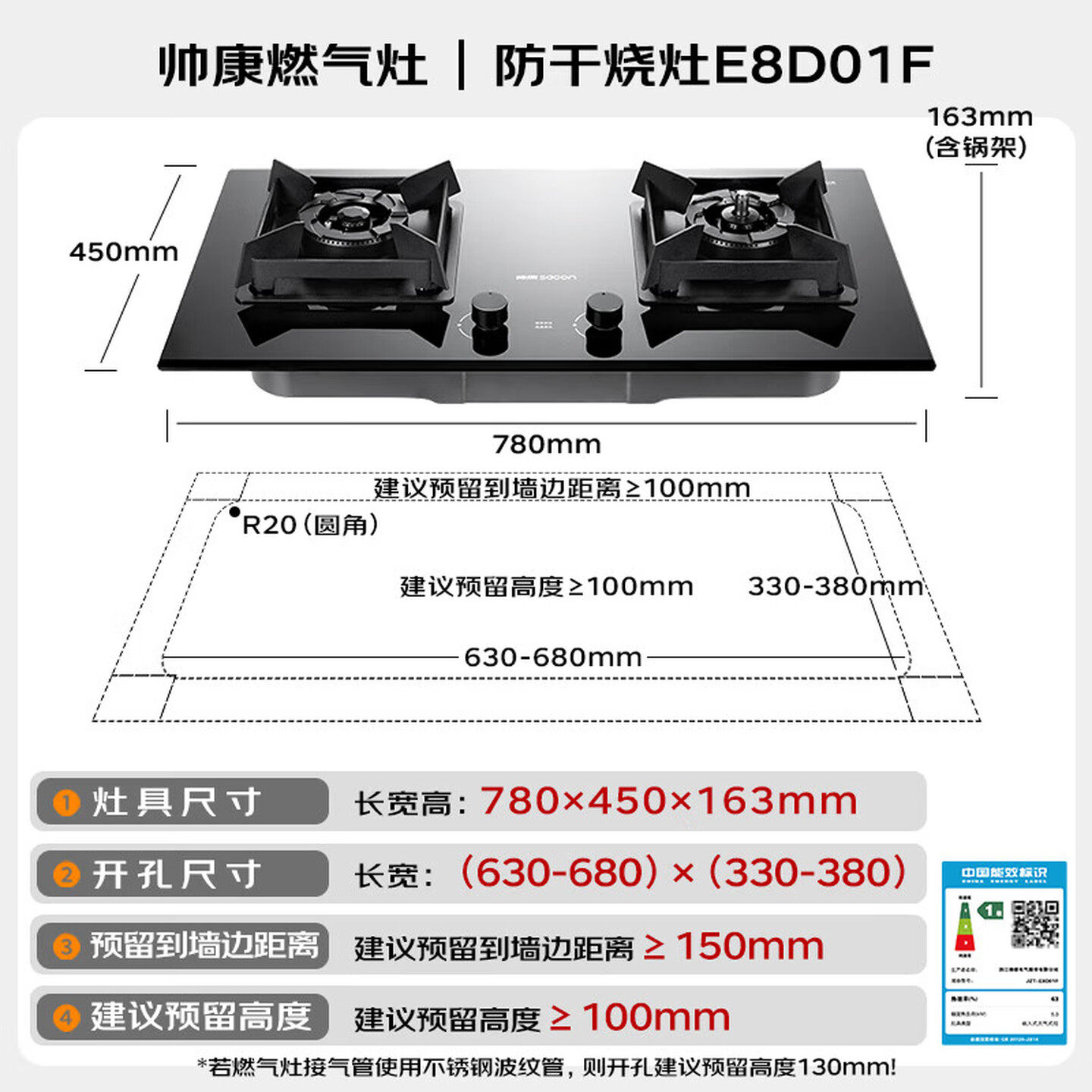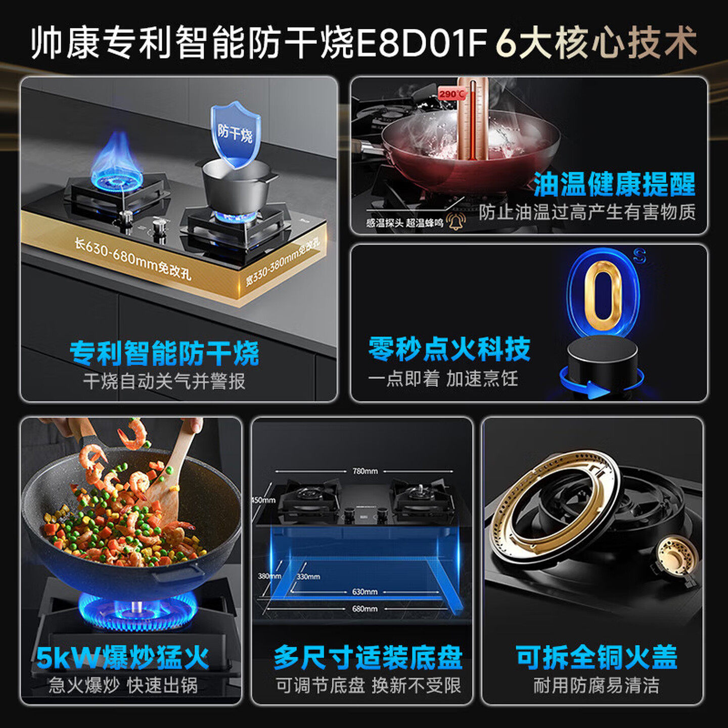帅康E8D01f大火力防干烧燃气灶