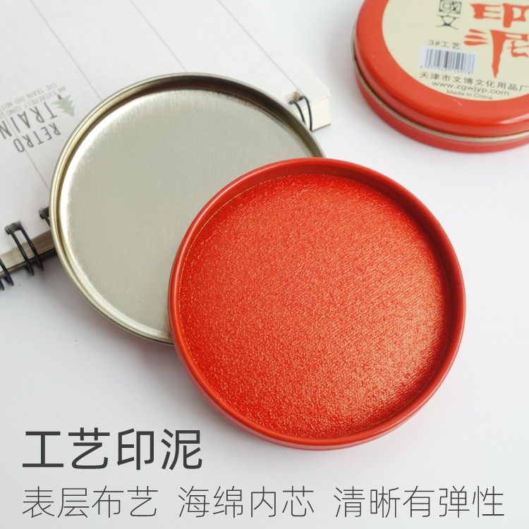 红色圆形铁盒印泥3号印台