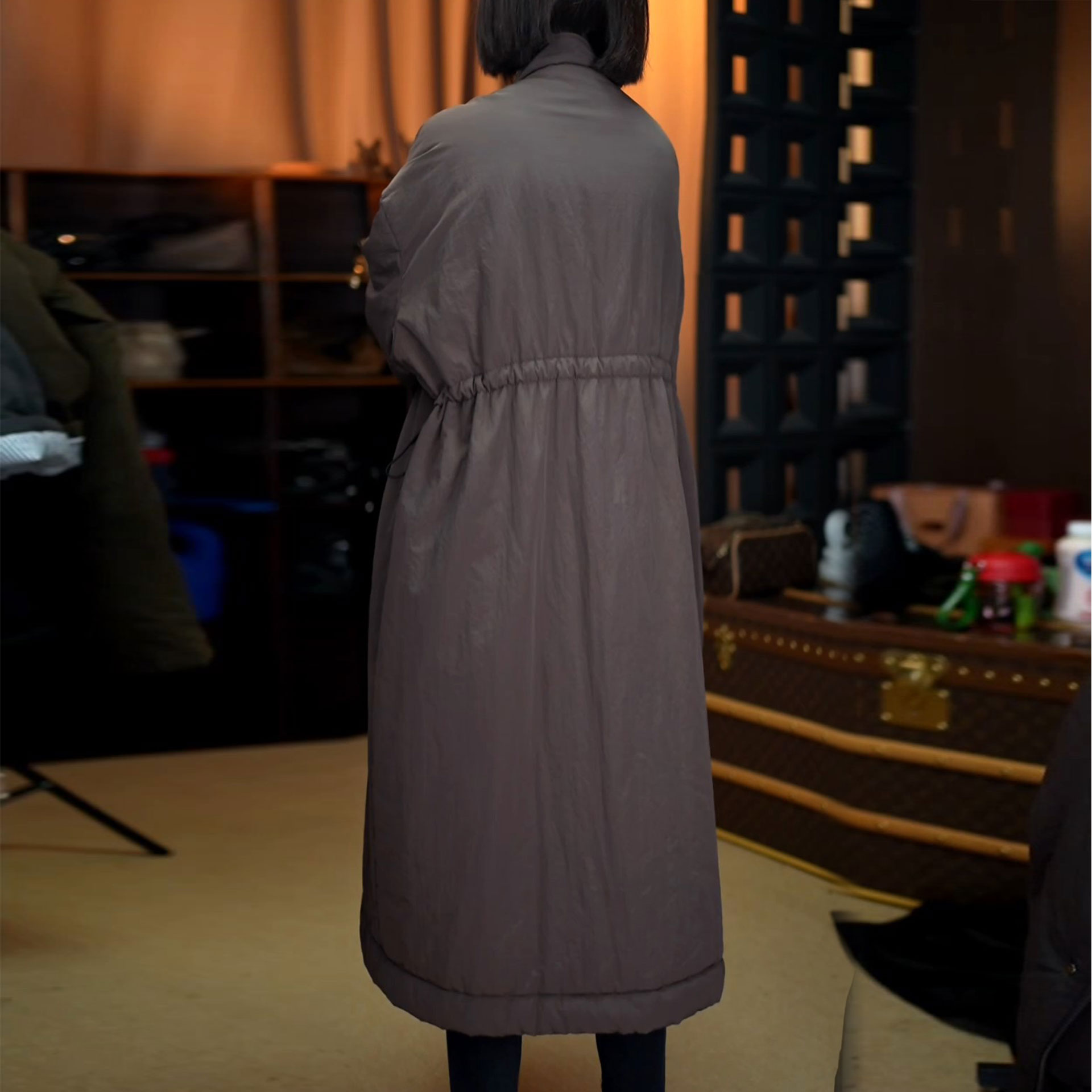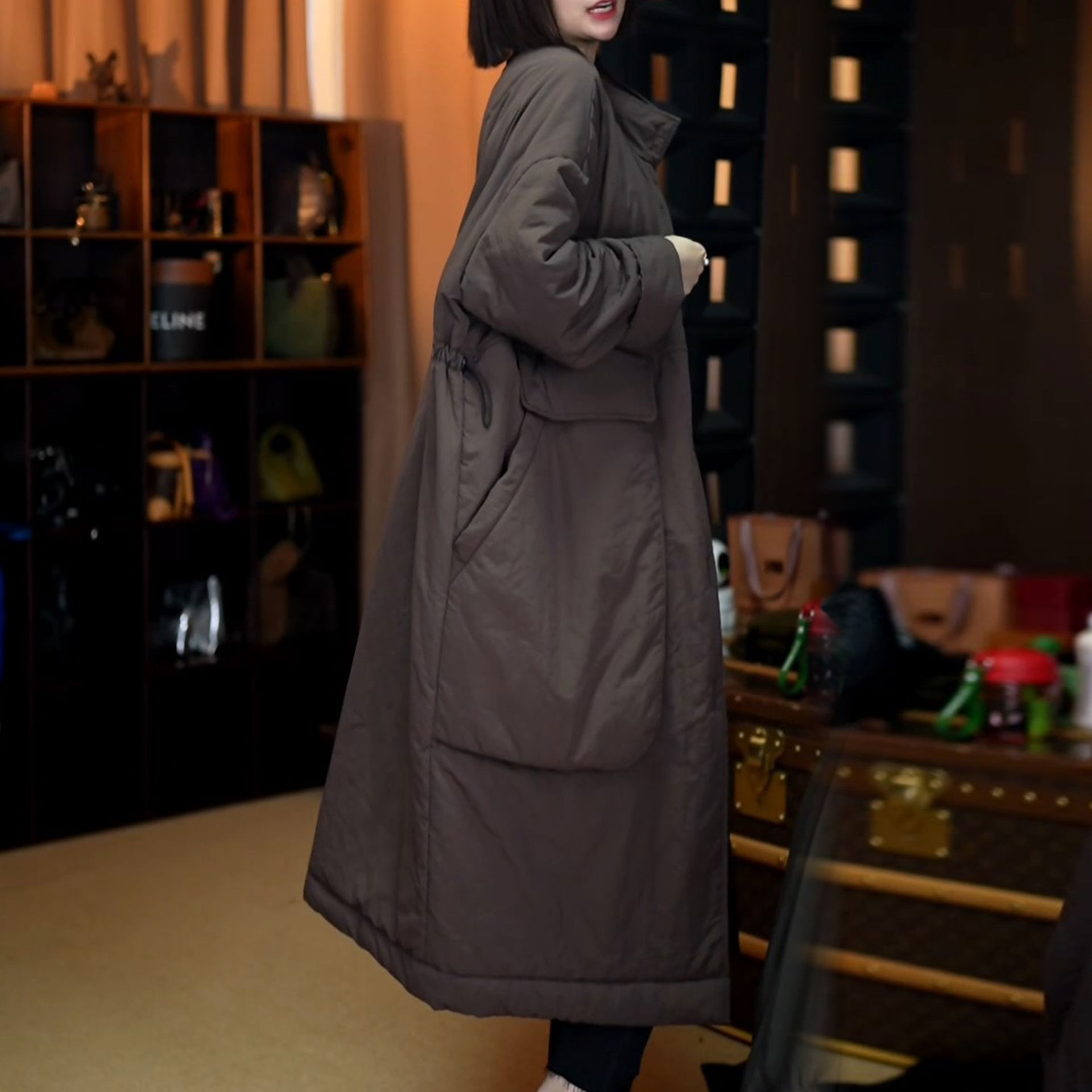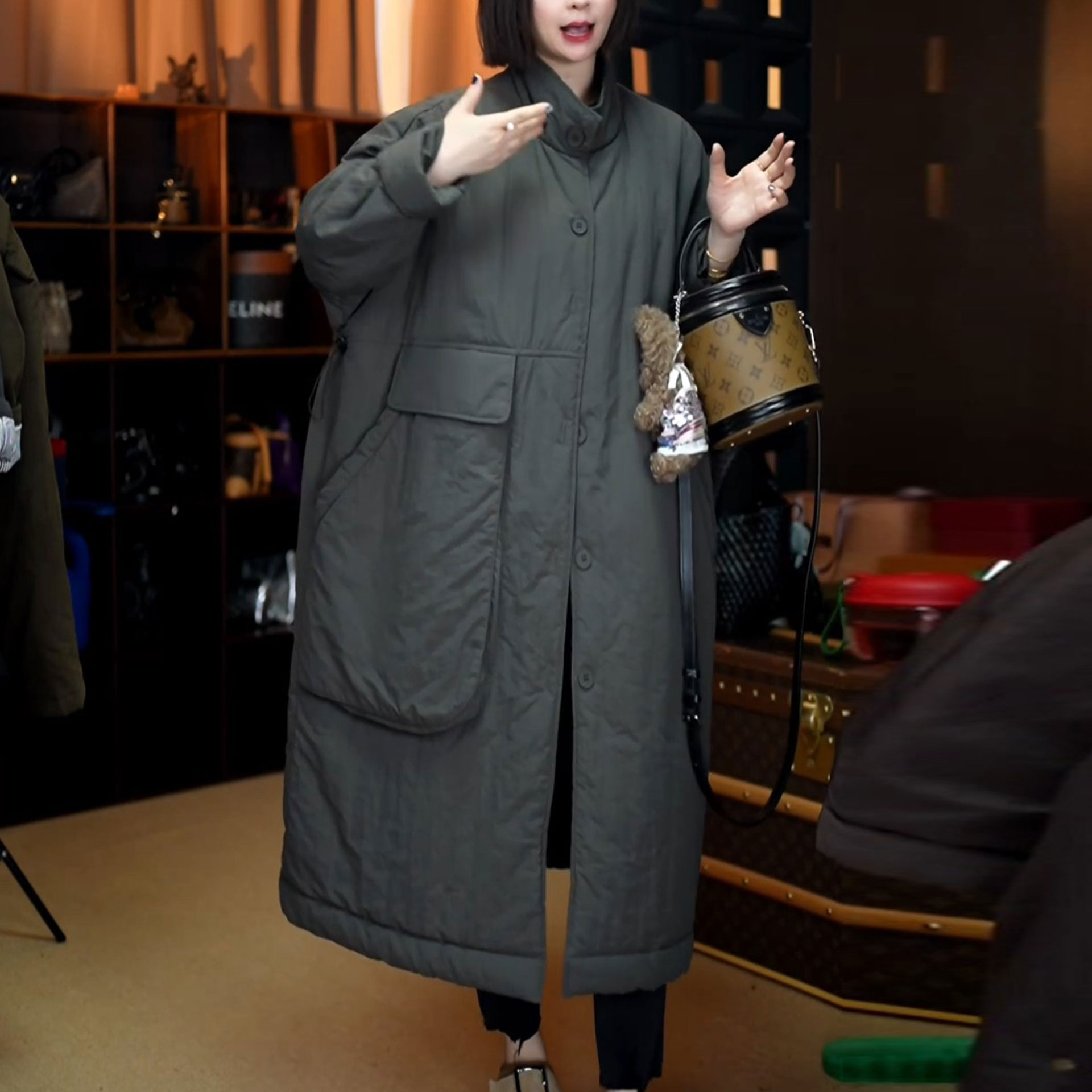 2025秋冬季中长款立领保暖棉衣口袋气质防风加棉通勤百搭加厚棉服