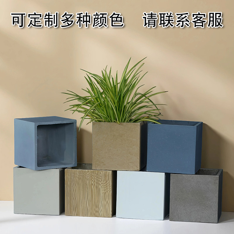 简约正方形水泥镁泥创意花盆景观艺术家庭阳台室内户外绿植花箱盆