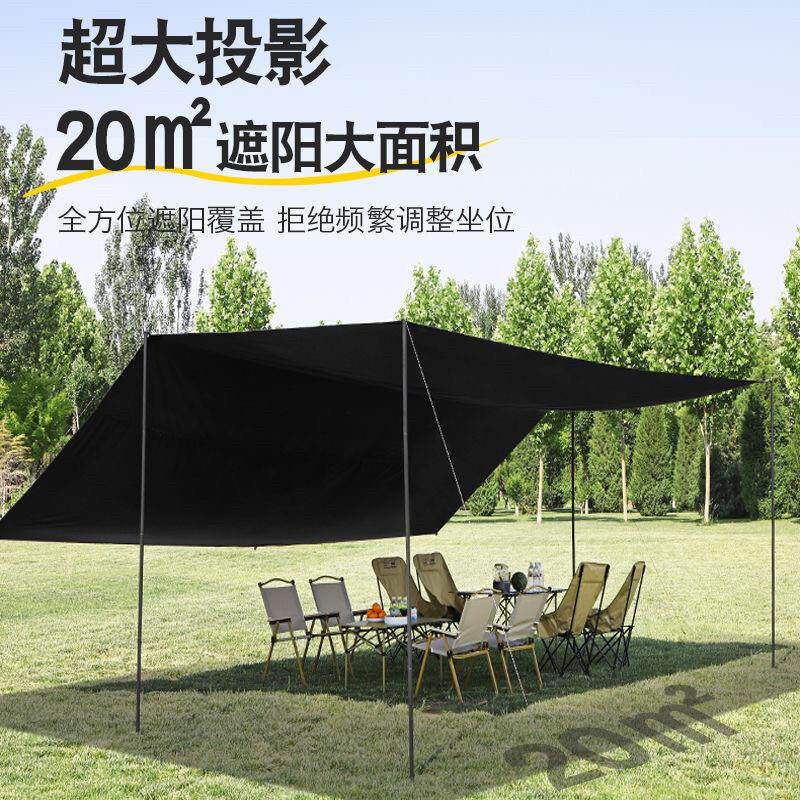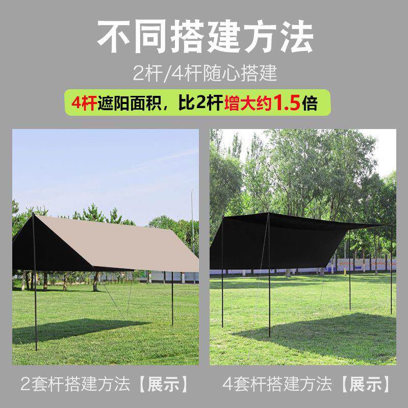 户外大号涂银遮阳棚可携式野外防晒加厚黑胶四杆天幕露营帐篷装备