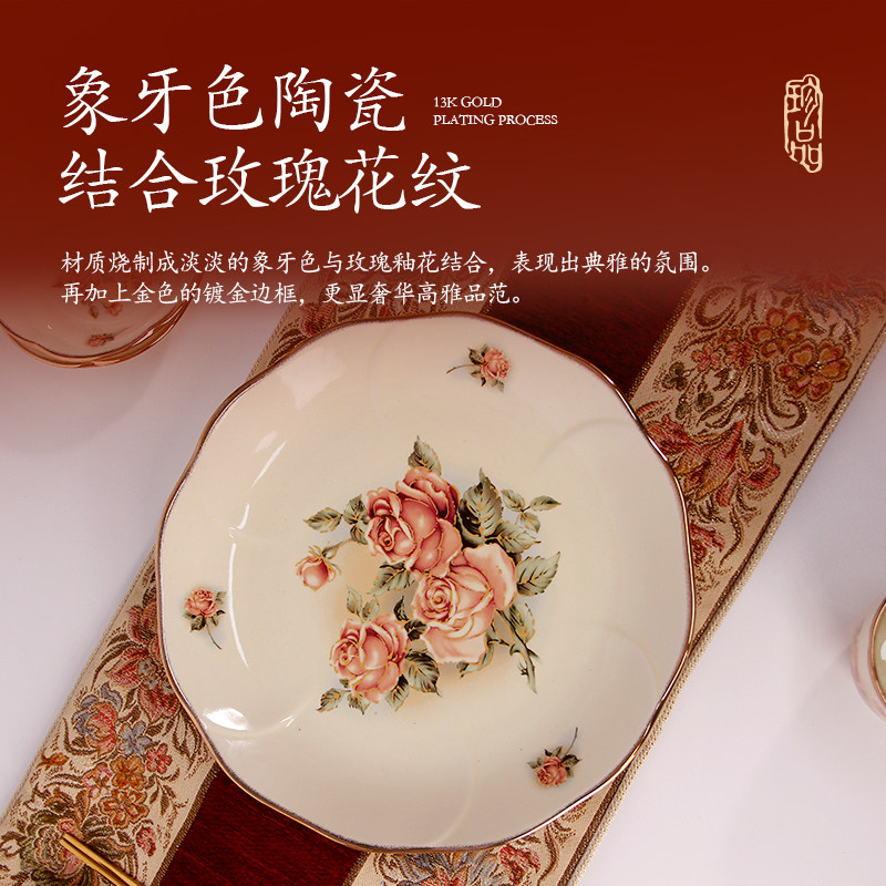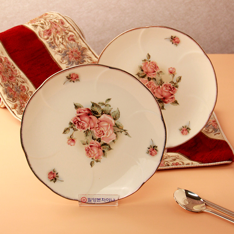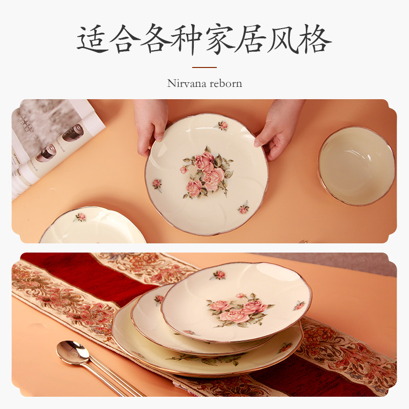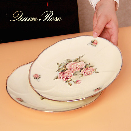 韩国原装进口女皇玫瑰陶瓷盘子家用菜盘圆盘平盘盘子餐盘餐具碟子