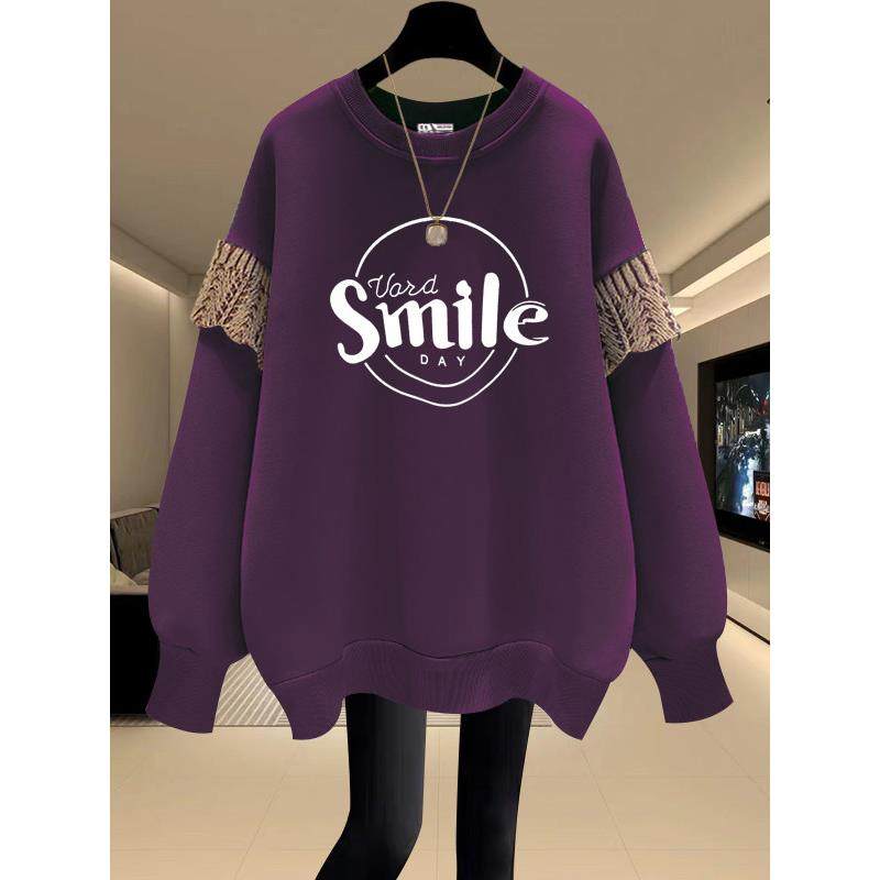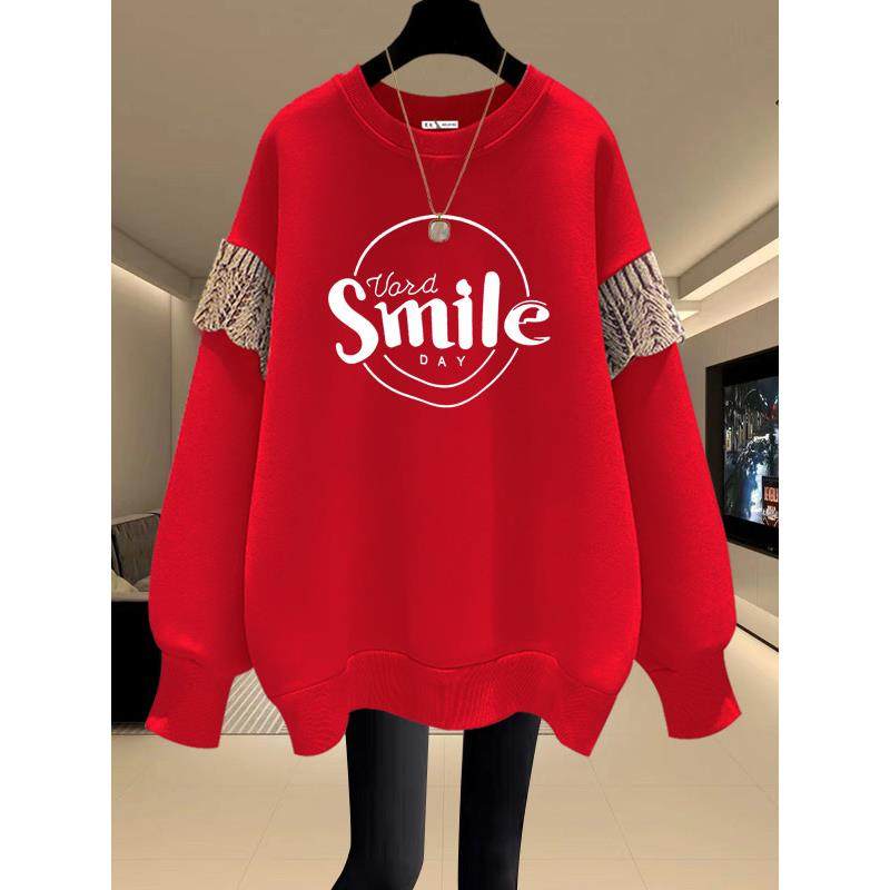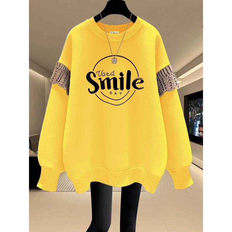 圆领卫衣女2025秋冬新款宽松韩版套头加绒加厚拼接中长款遮屁股潮