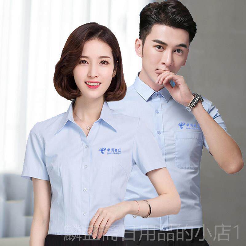 正品职衬衫夏长短袖业装定绣LGO员工男女工制装O营业厅工作服中国
