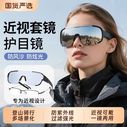 登山护目镜雪山骑行可戴眼镜近视套镜户外防风沙男女爬山墨镜圆脸