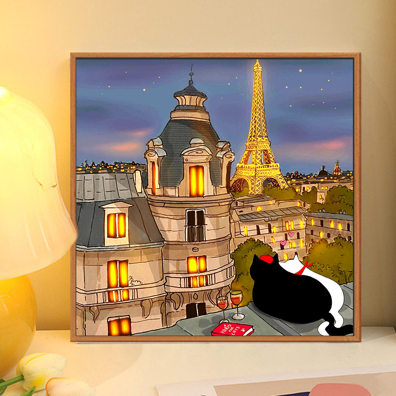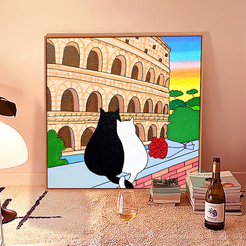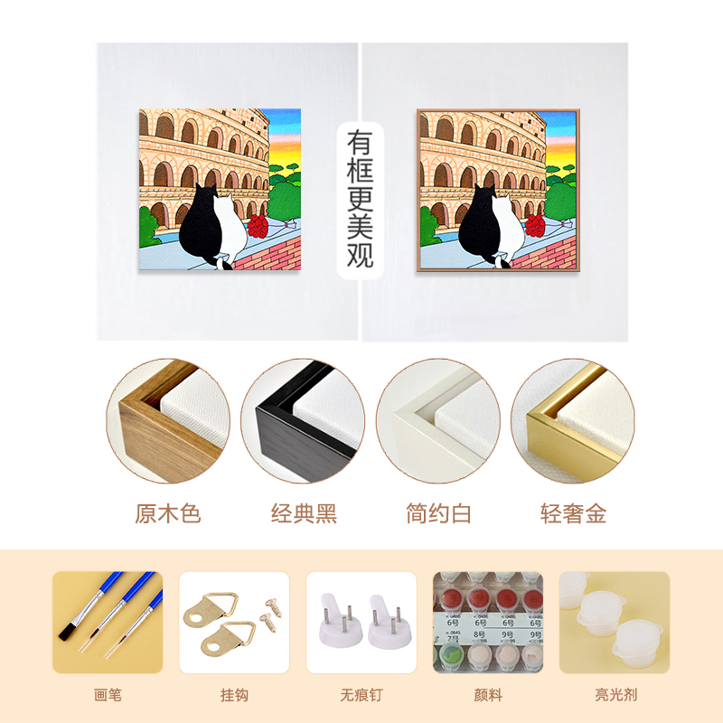 猫咪情侣日常数字油画diy填充涂色黑白治愈浪漫丙烯手工绘装饰画