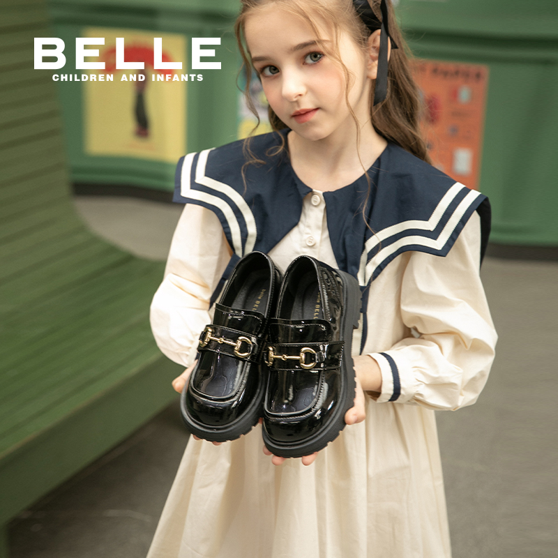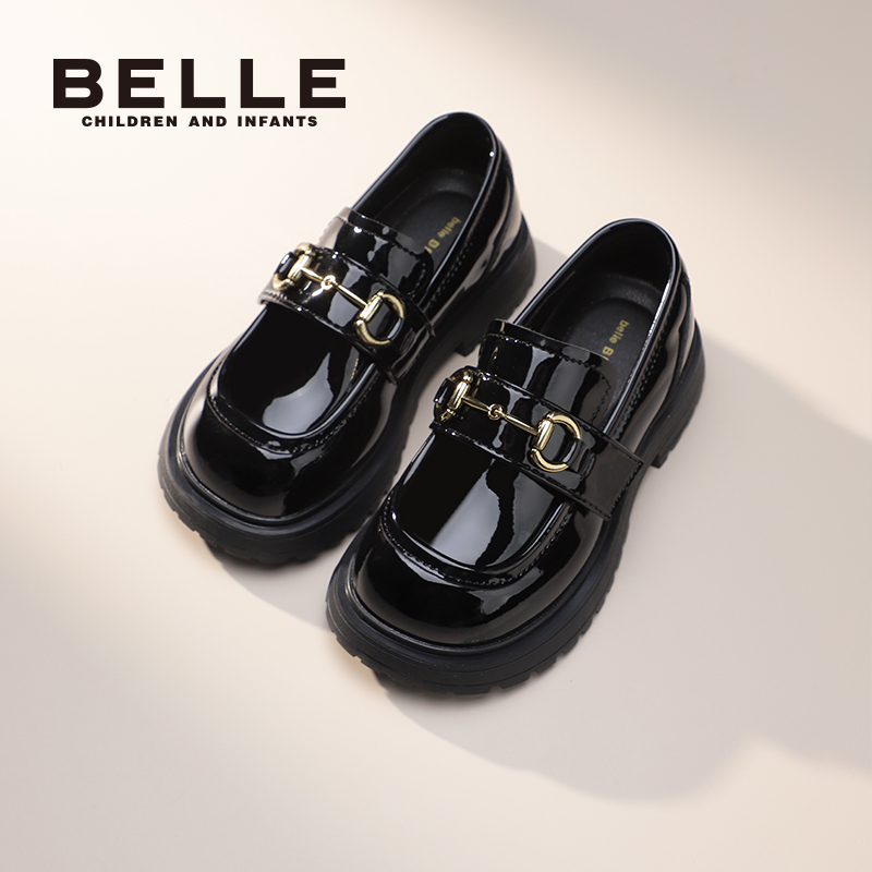 百丽童鞋女童黑皮鞋春季新款时尚单鞋小女孩公主鞋儿童乐福鞋