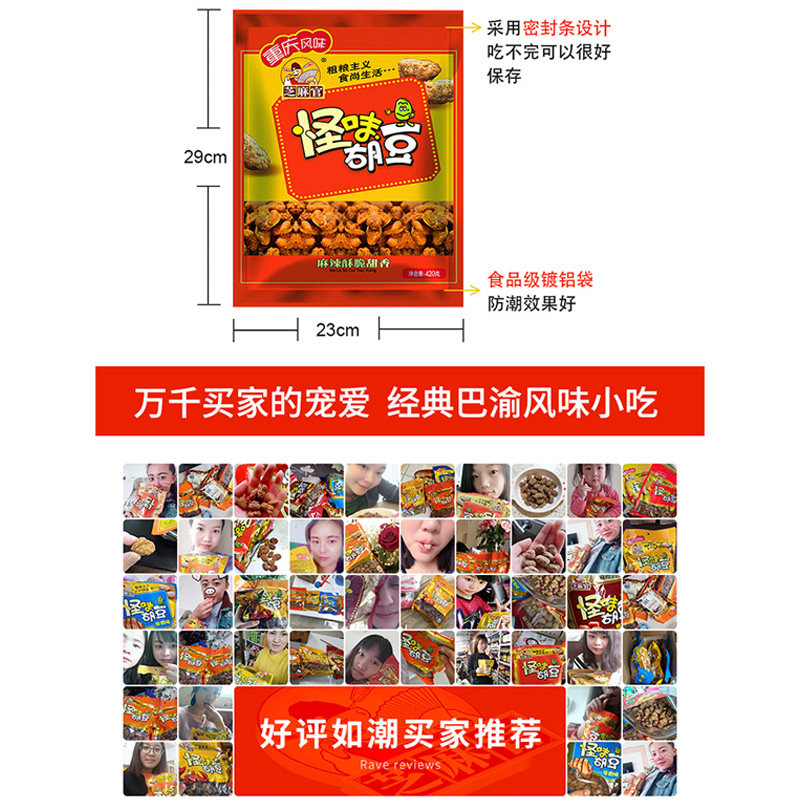 芝麻官怪味胡豆重庆特产420g*4零食小吃休闲食品兰花豆蚕豆大礼包
