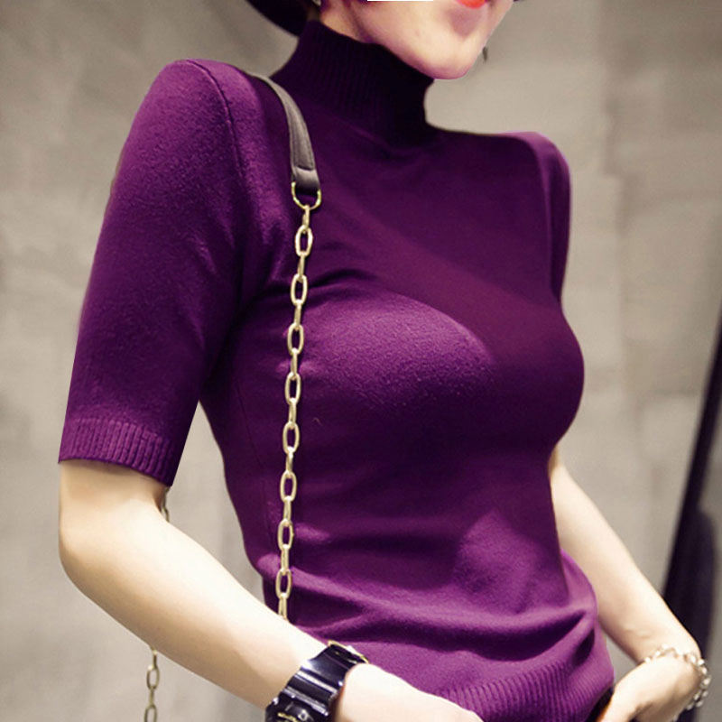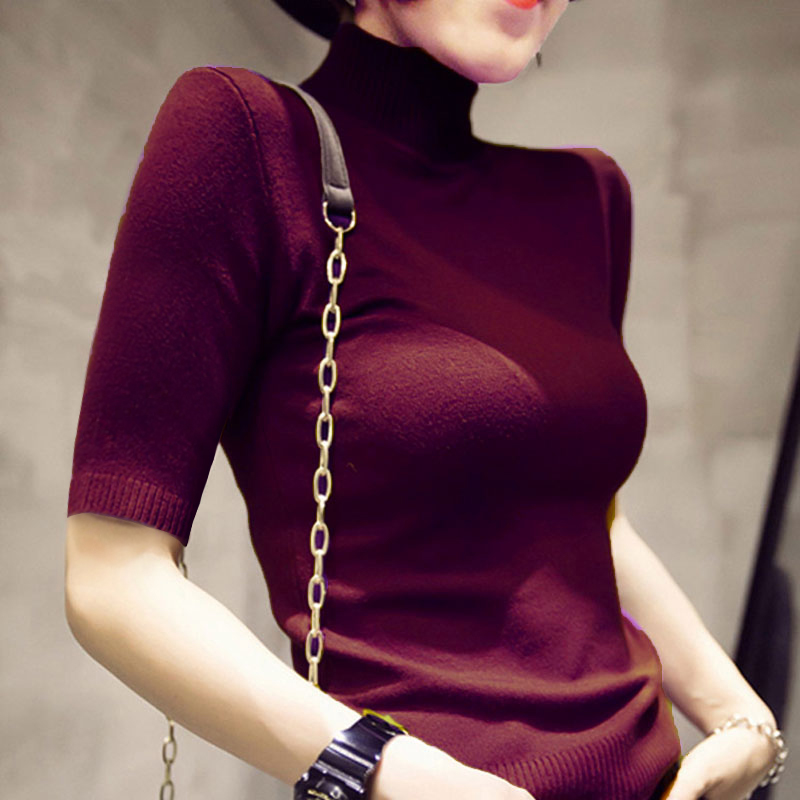大码女装胖mm中袖针织衫春秋冬季毛衣半高领五分袖洋气打底衫上衣