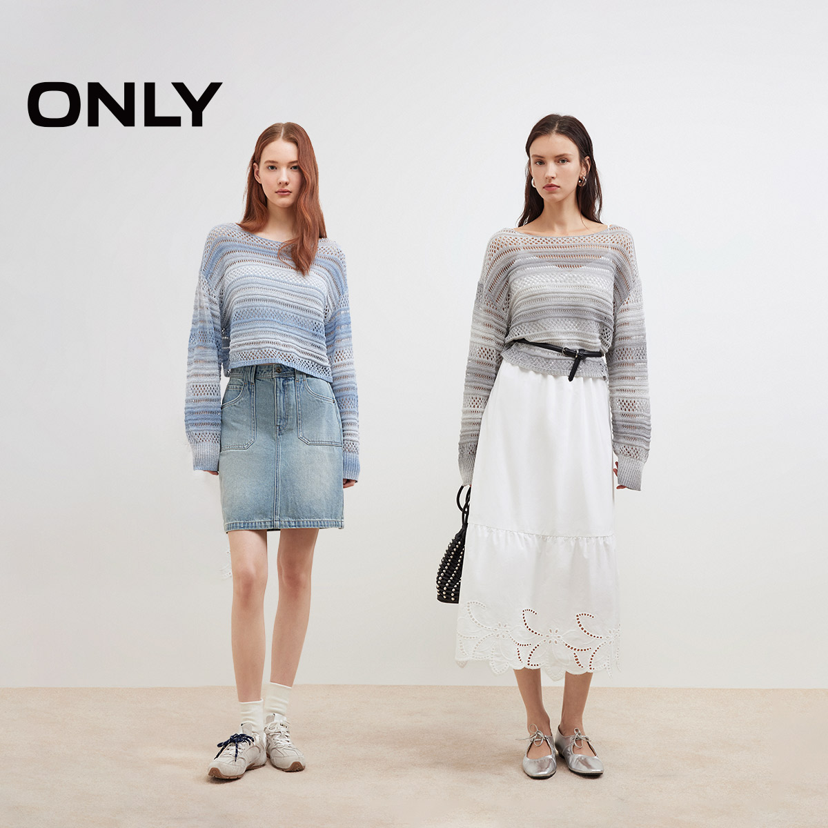 ONLY镂空渐变宽松短款针织衫