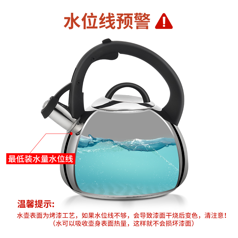 HausRoland加厚不锈钢烧水壶燃气煤气电磁炉厨房家用鸣笛镜光水壶