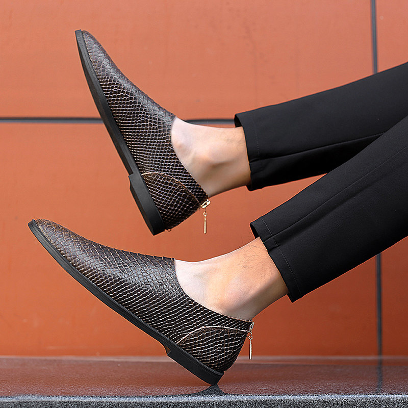 尖头休闲男皮鞋2025新款轻便软低真皮小码时尚潮流一脚蹬豆豆鞋男