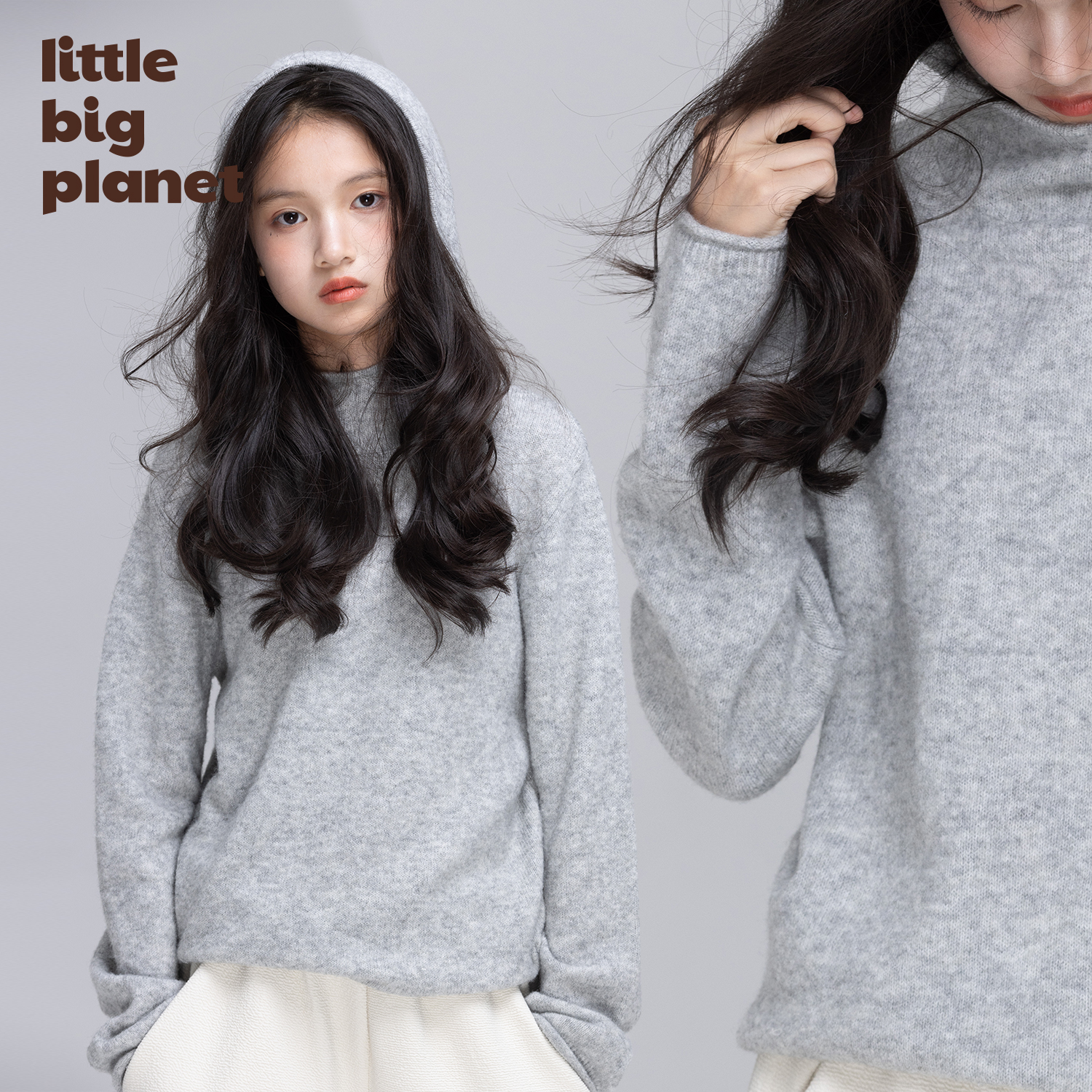 小小大星球童装 超细羊毛混纺软糯针织毛衣 两色女童温暖连帽毛衣