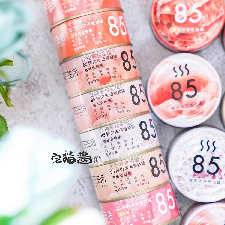 宅猫酱 尾巴生活85度猫罐头鲜肉浓汤金枪鱼猫零食猫湿粮85g*8罐