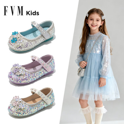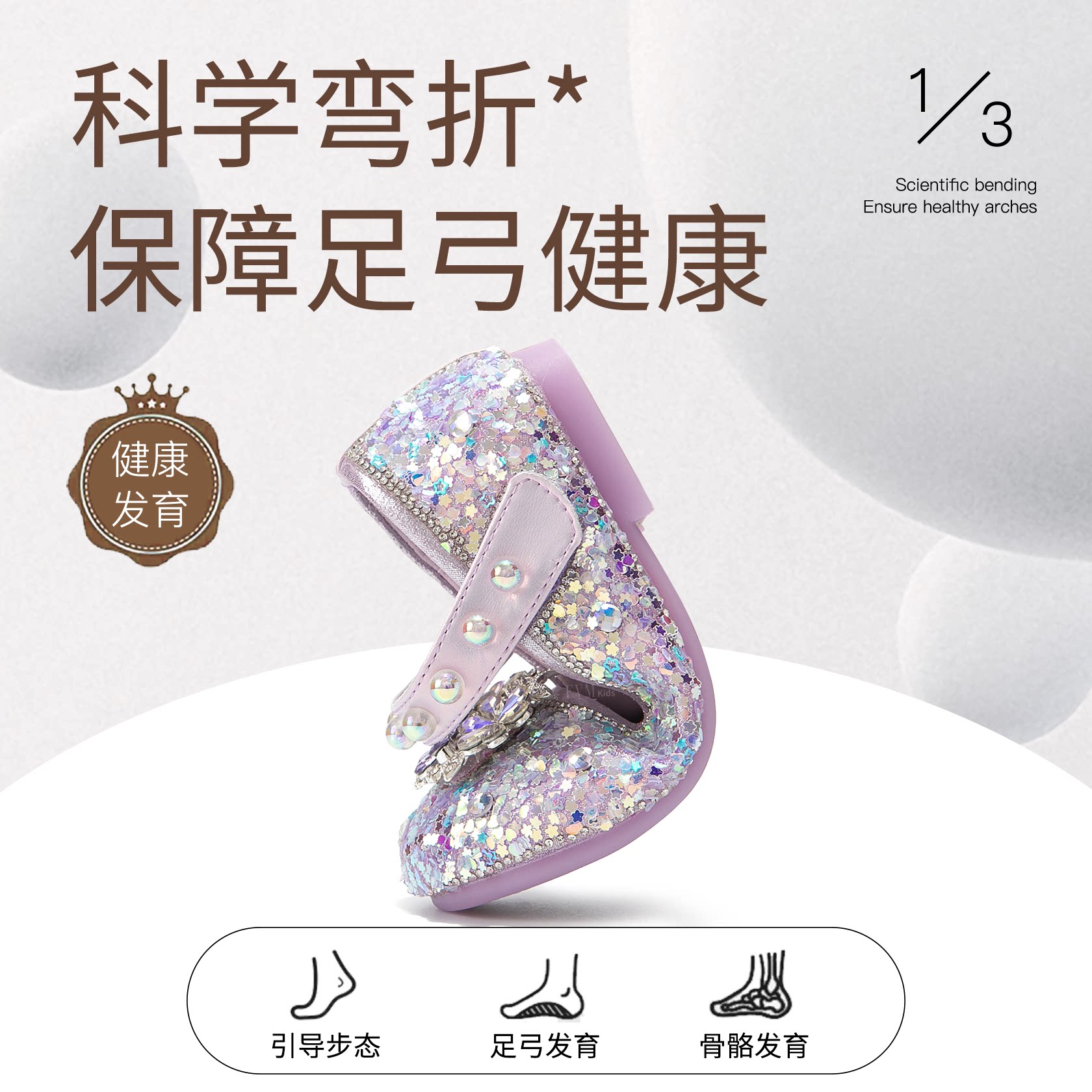 女童鞋子儿童公主水晶鞋2026新款春季爱莎软底女孩女宝宝大童洋气