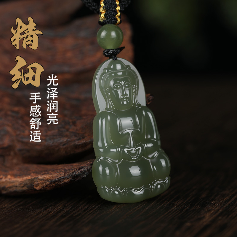 唐今玉保真天然和田玉观音头吊坠男款女青白玉佛牌佛像玉石玉佩玉