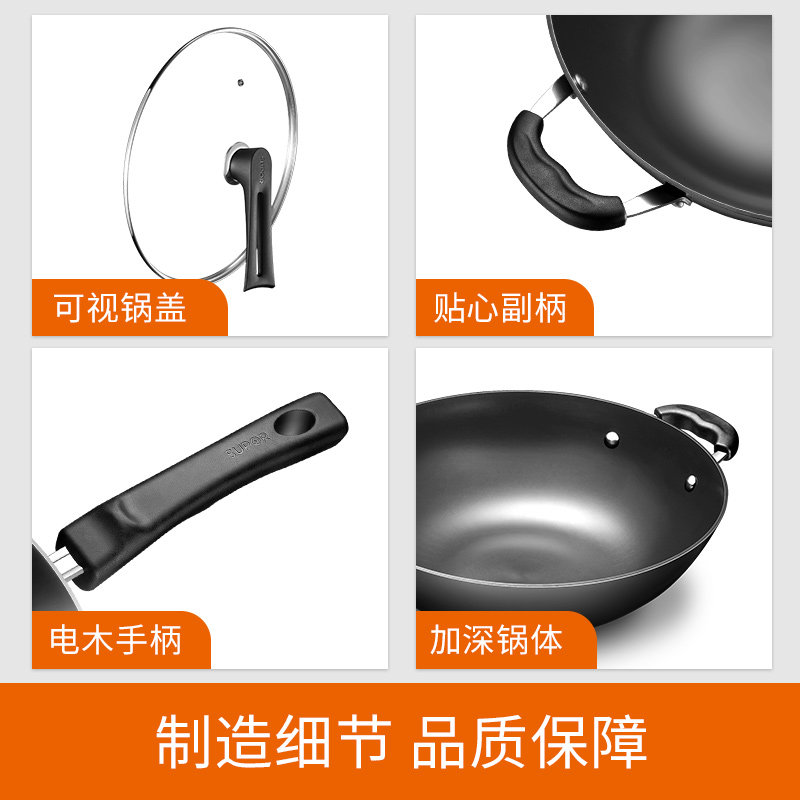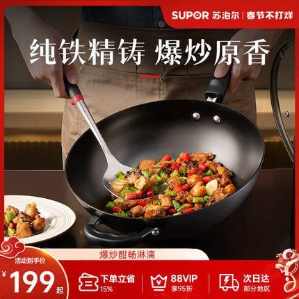 苏泊尔真不锈铸铁炒锅家用铁锅无涂层炒菜锅