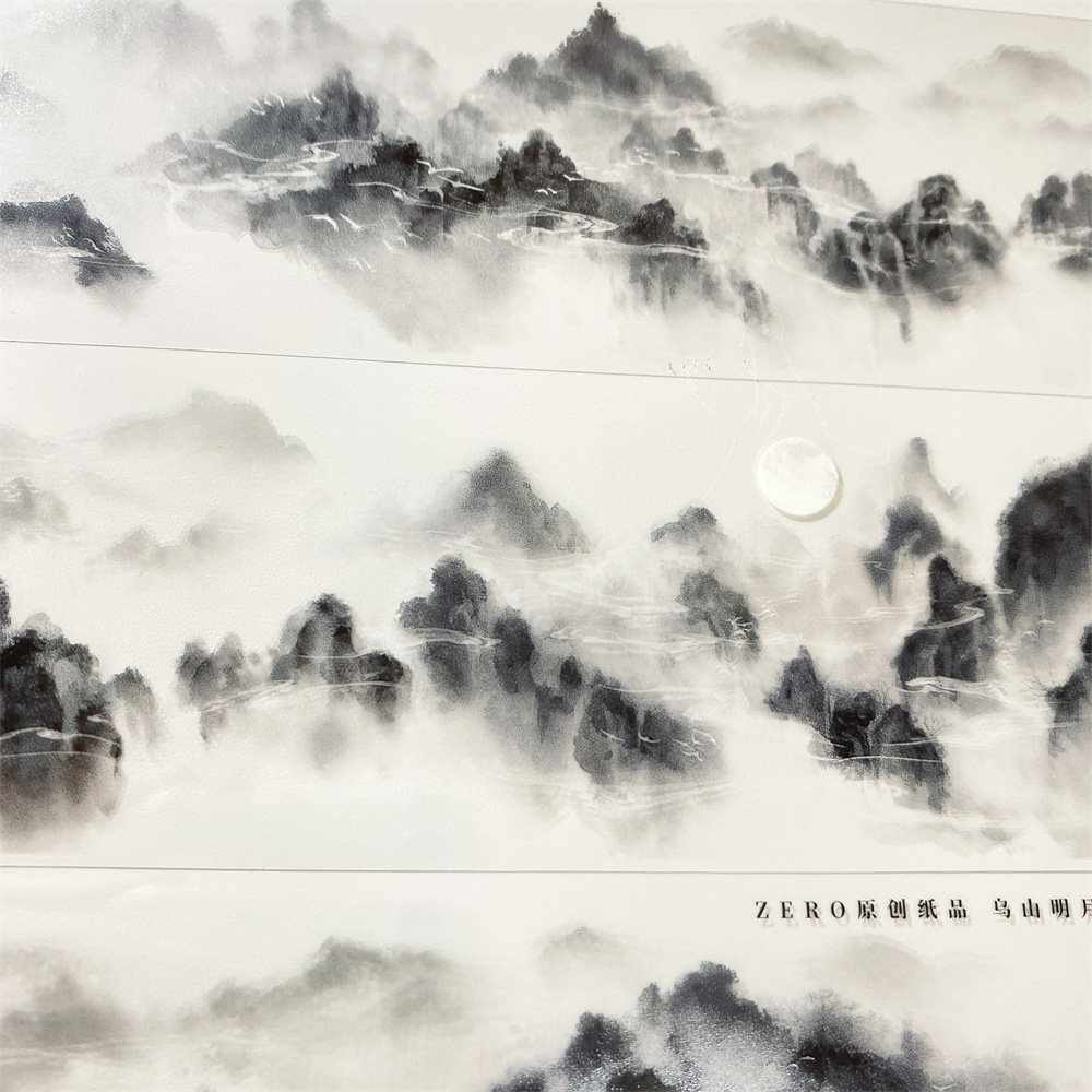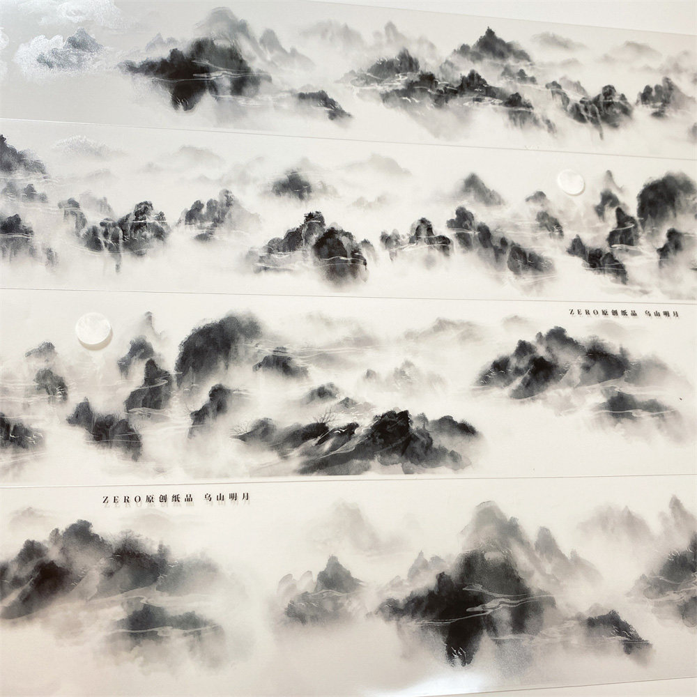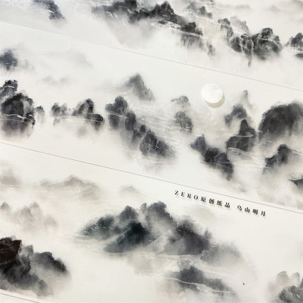 一件包邮手帐分装胶带043乌山月明zero水墨山古风素材账流麻贴纸