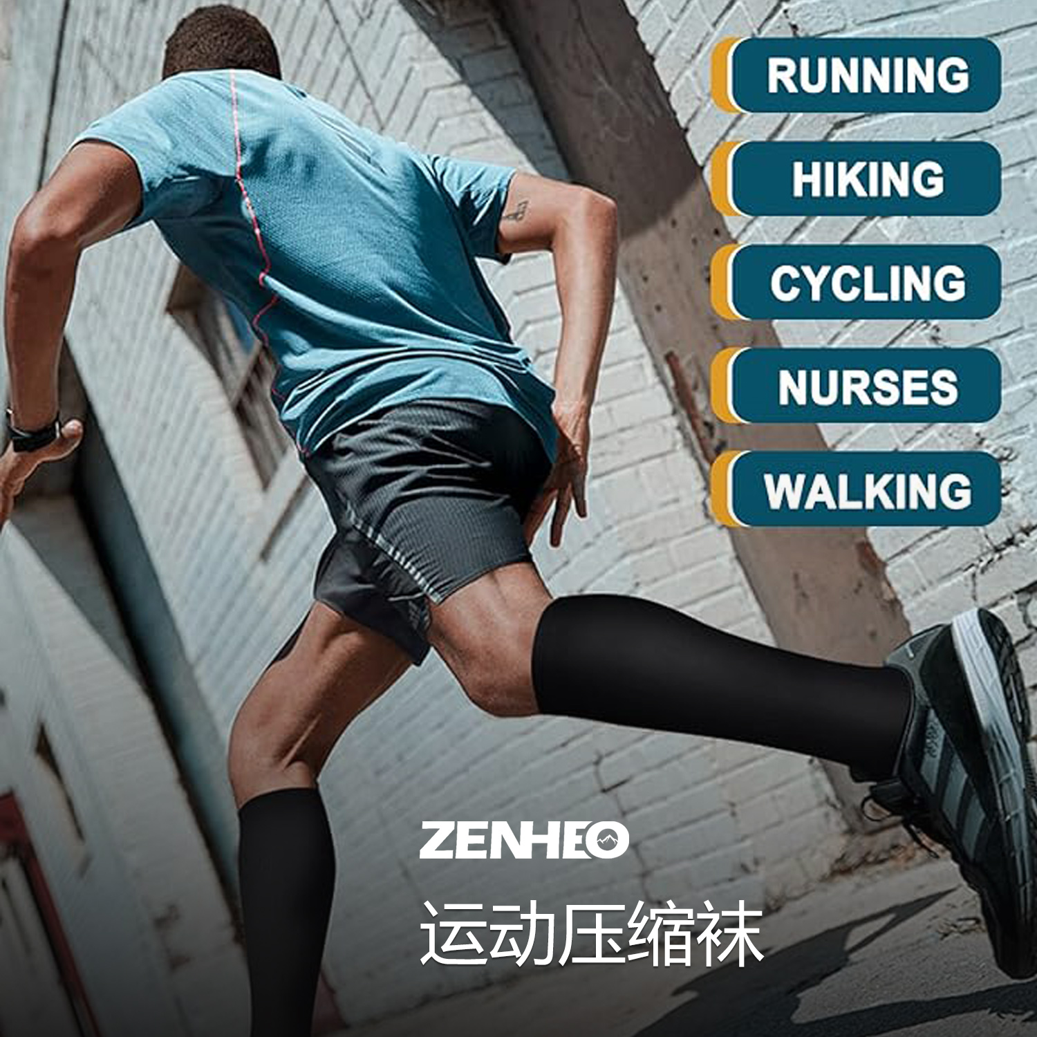 ZENHEO小腿压力袜登山袜运动袜跑步压缩袜徒步骑行压力袜长筒袜