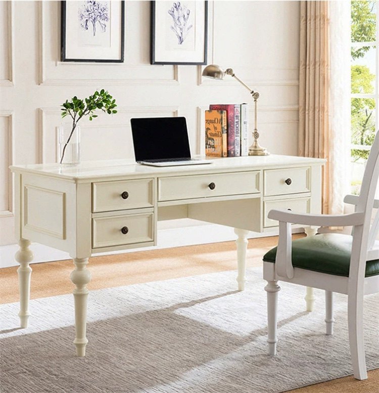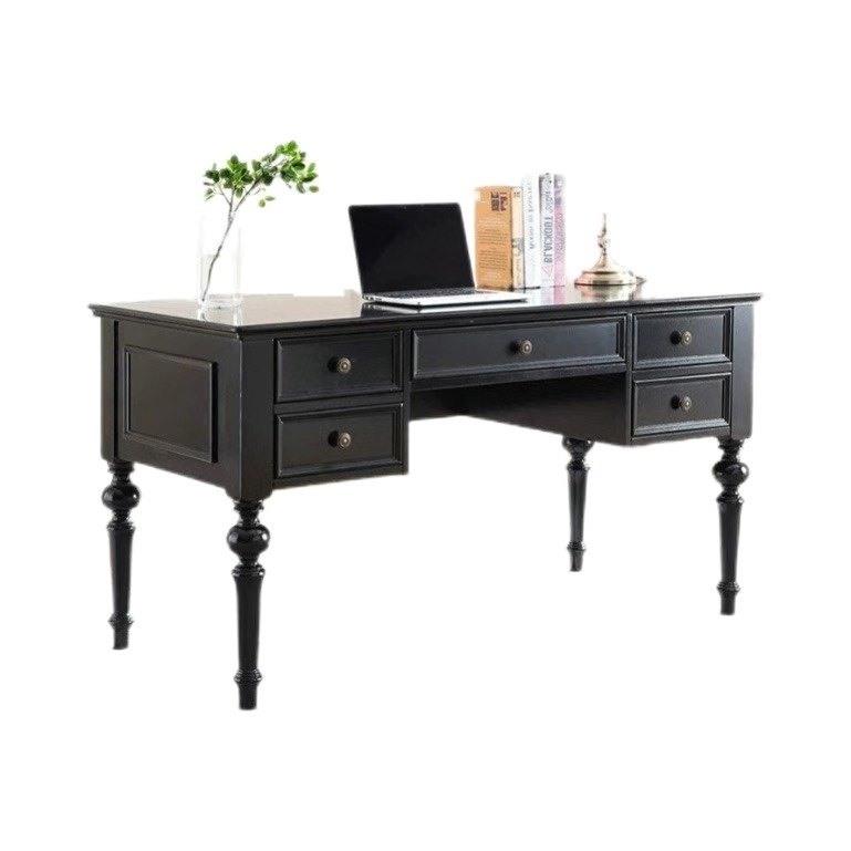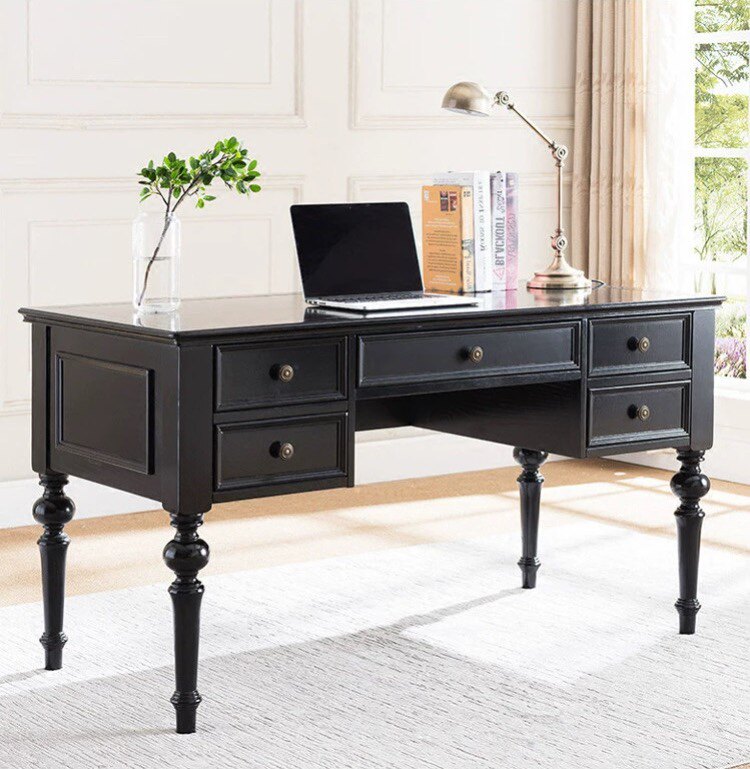 美式实木书桌椅组合法式复古黑色书房卧室办公桌电脑桌家用写字台