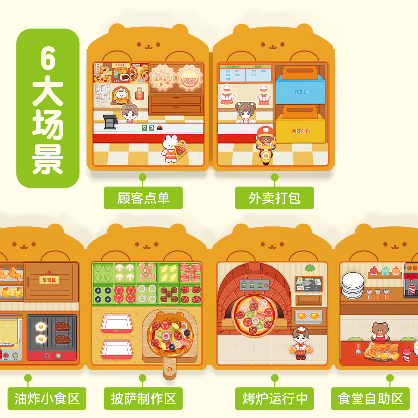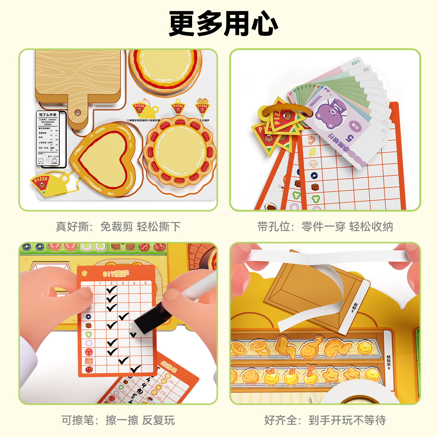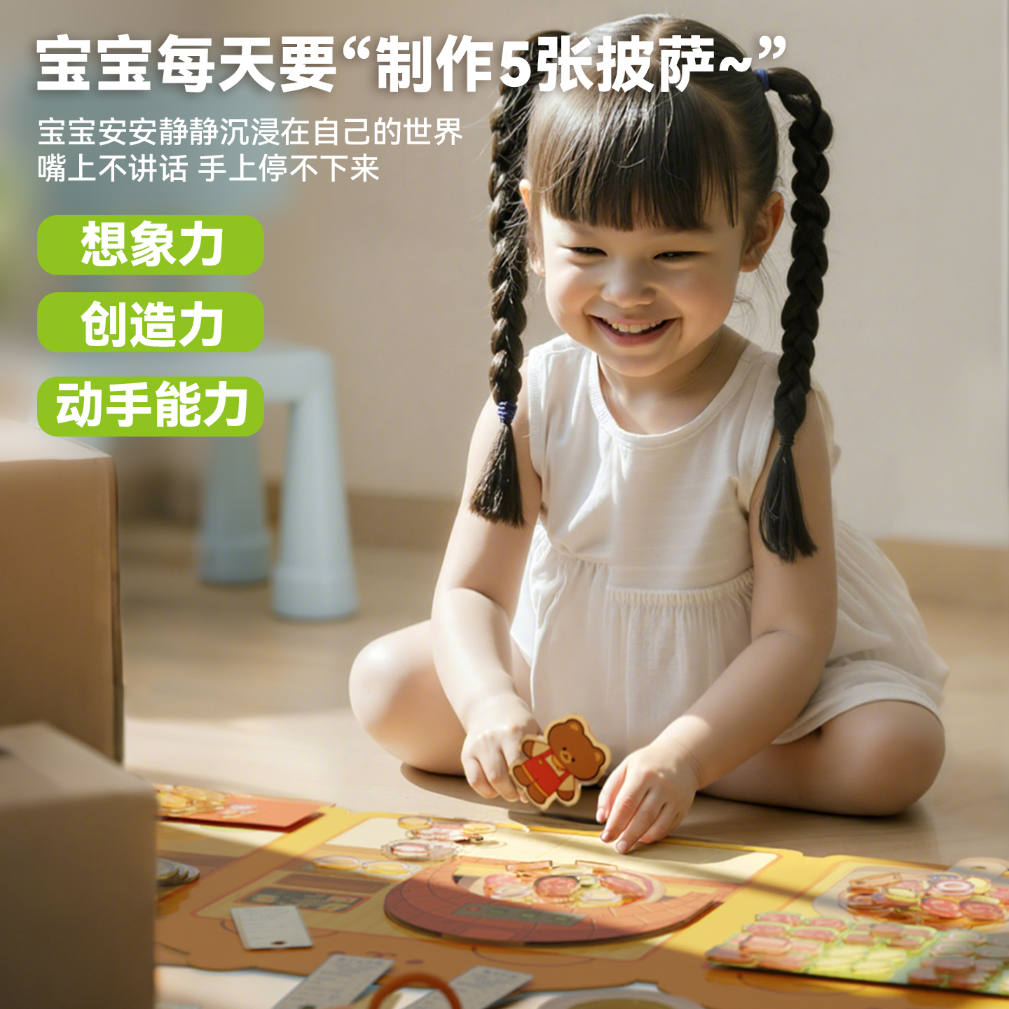 小熊披萨店果冻贴安静书免裁剪手工diy材料女孩益智玩具生日礼物3