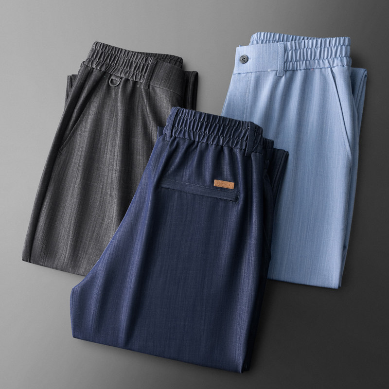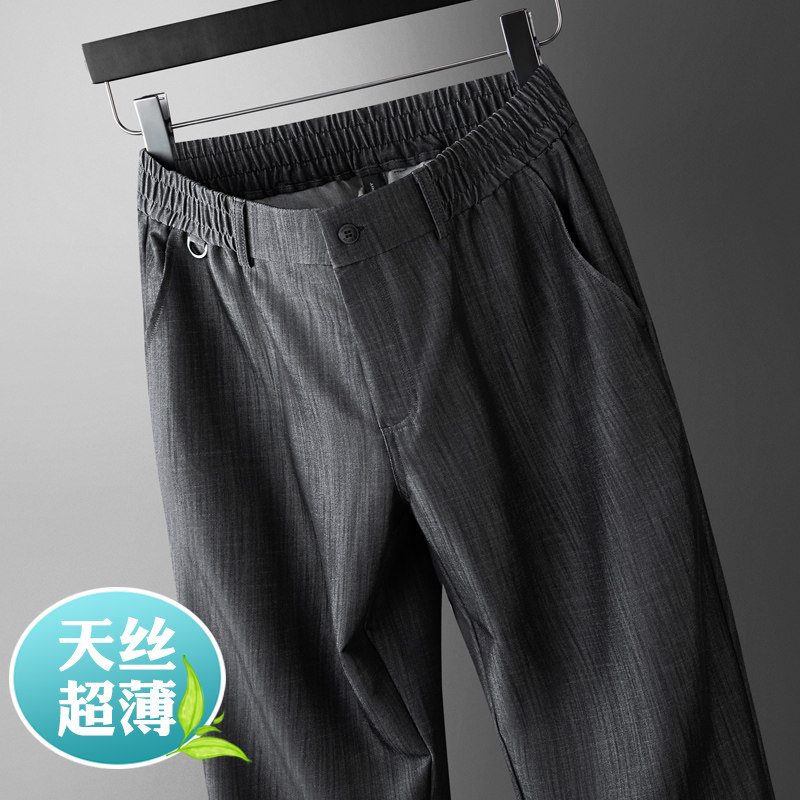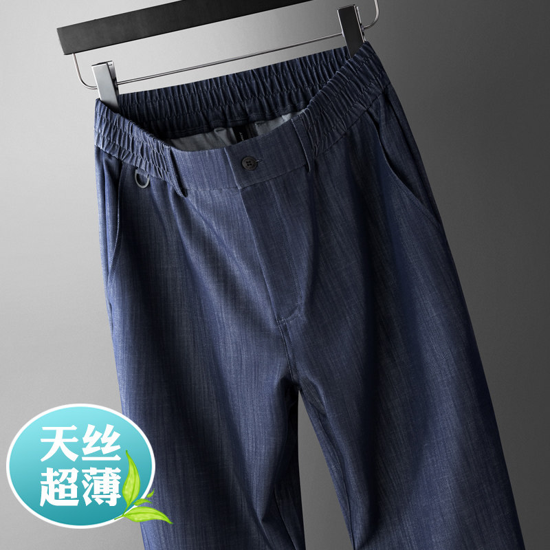 高端垂顺天丝夏季超薄阔腿男士牛仔裤宽松直筒中年商务休闲裤子男