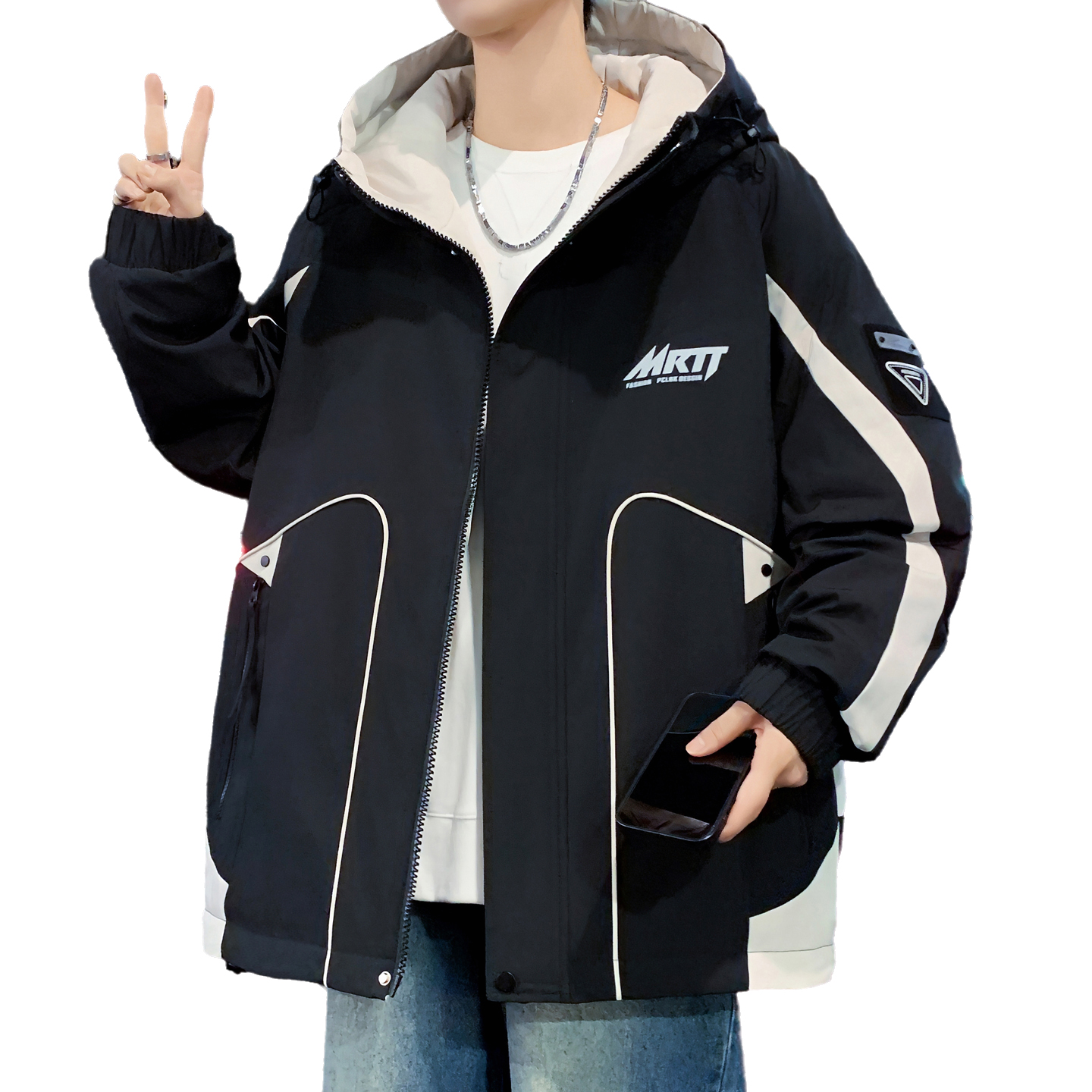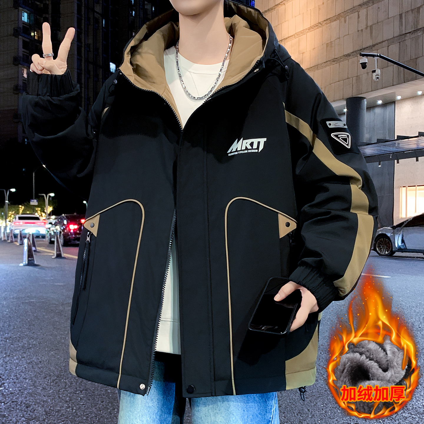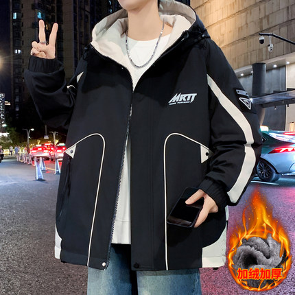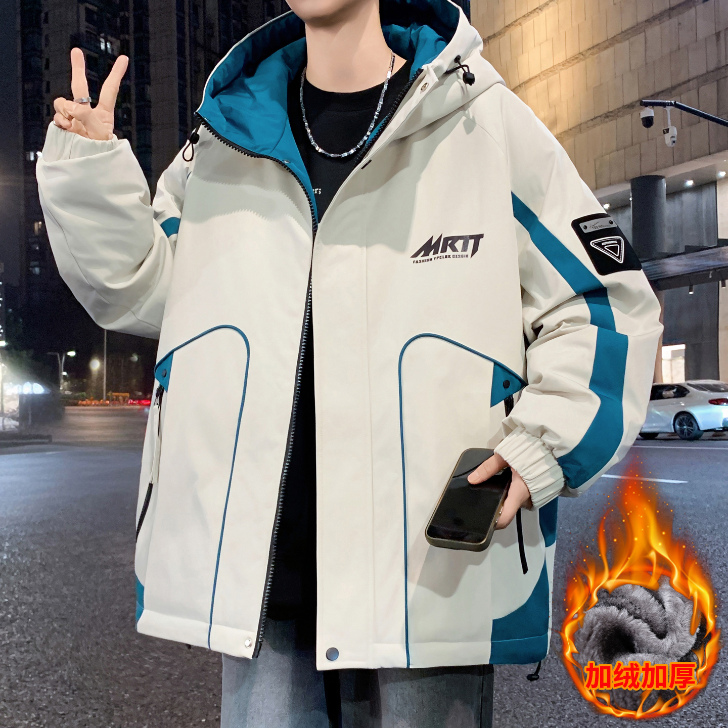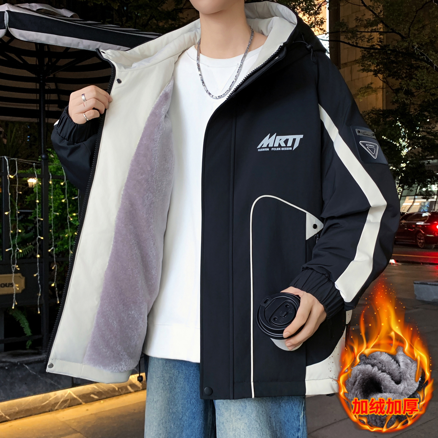 秋冬季青少年加绒厚外套男孩初高中学生大童冬装帅气工装夹克棉衣