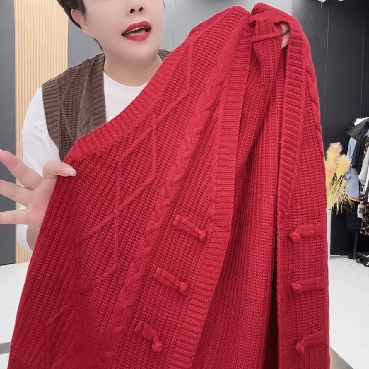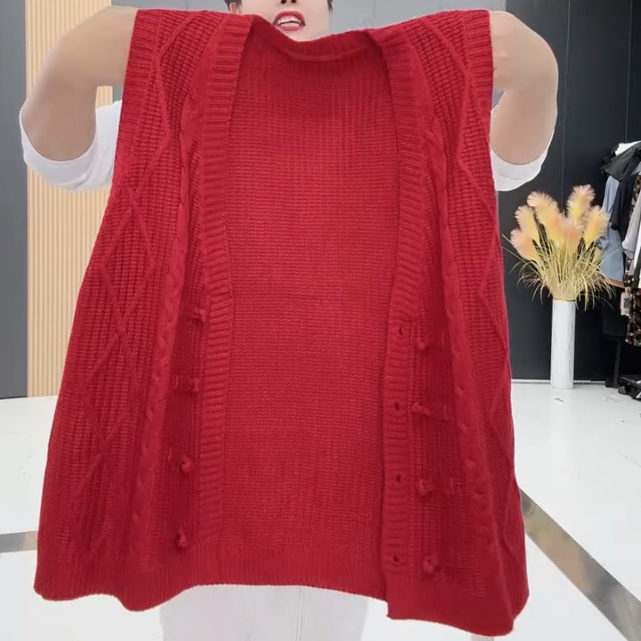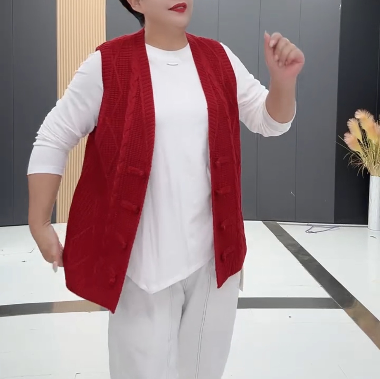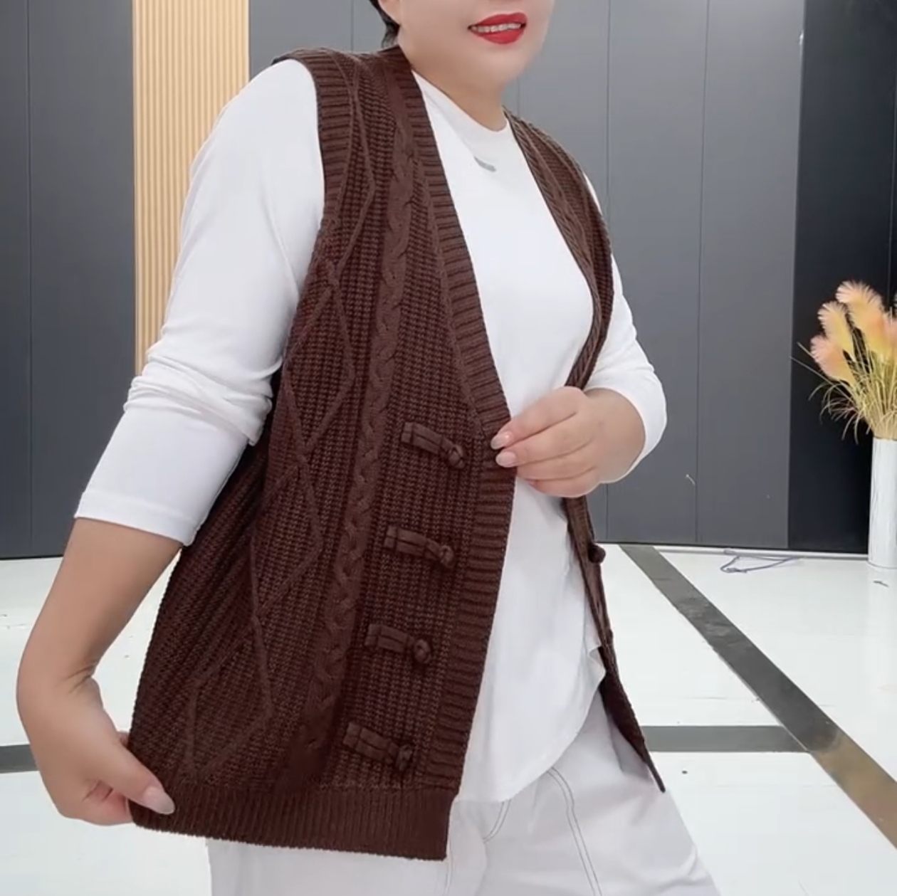 秋季中老年妈妈装加大码国风盘扣针织毛线马甲无袖背心外套上衣女
