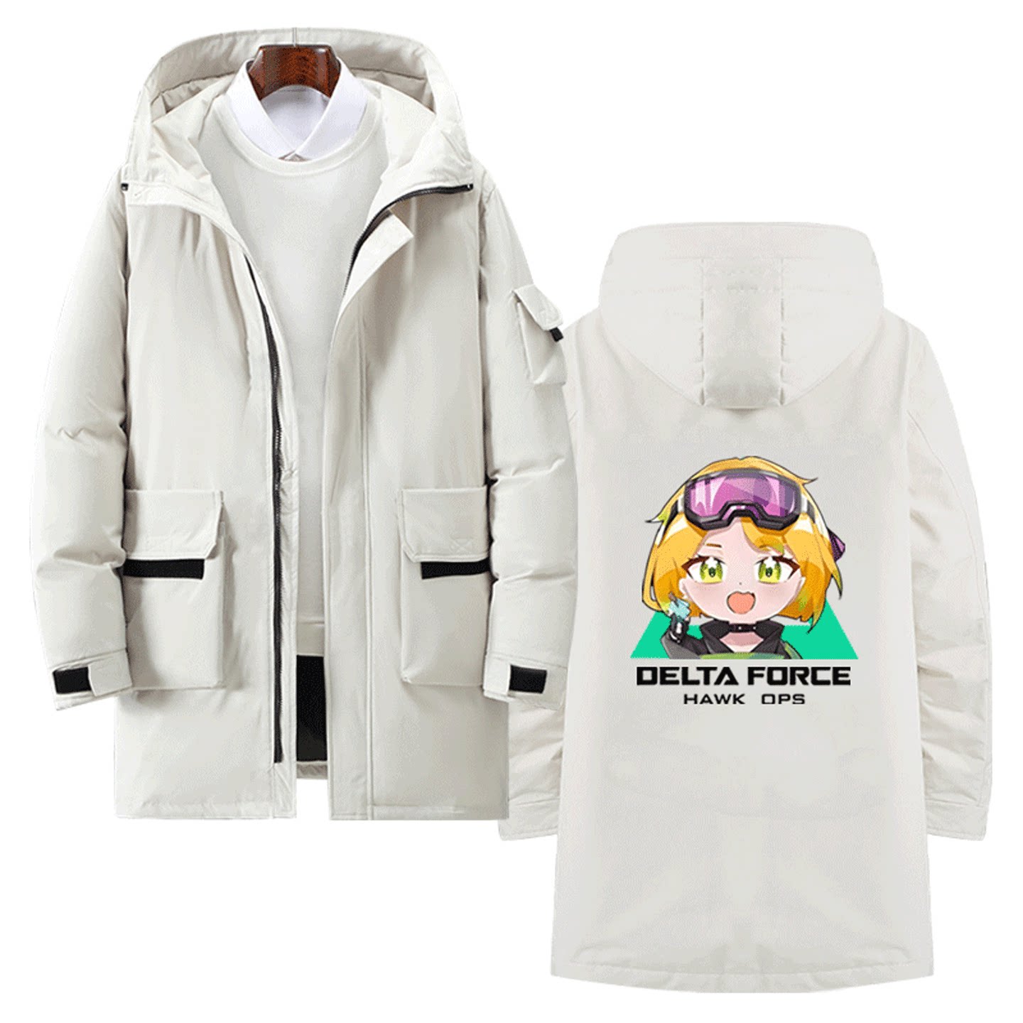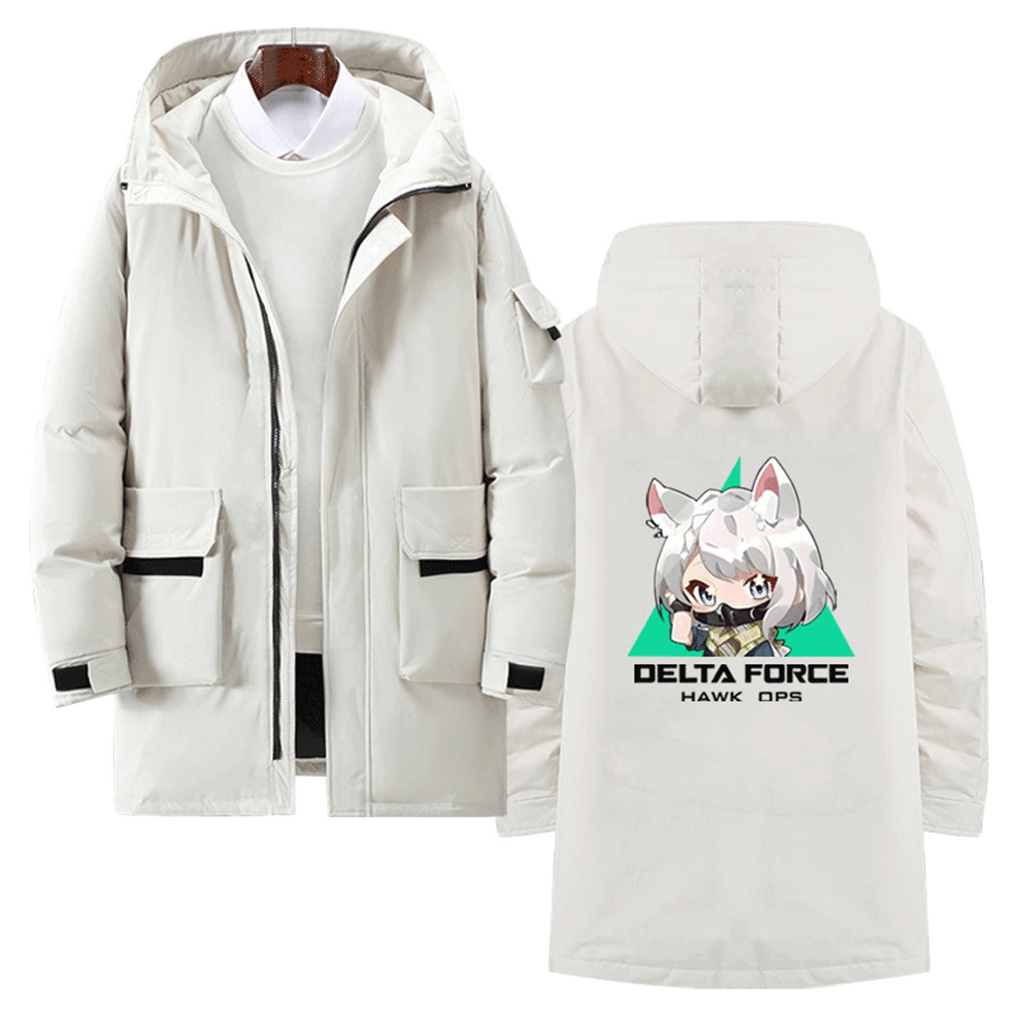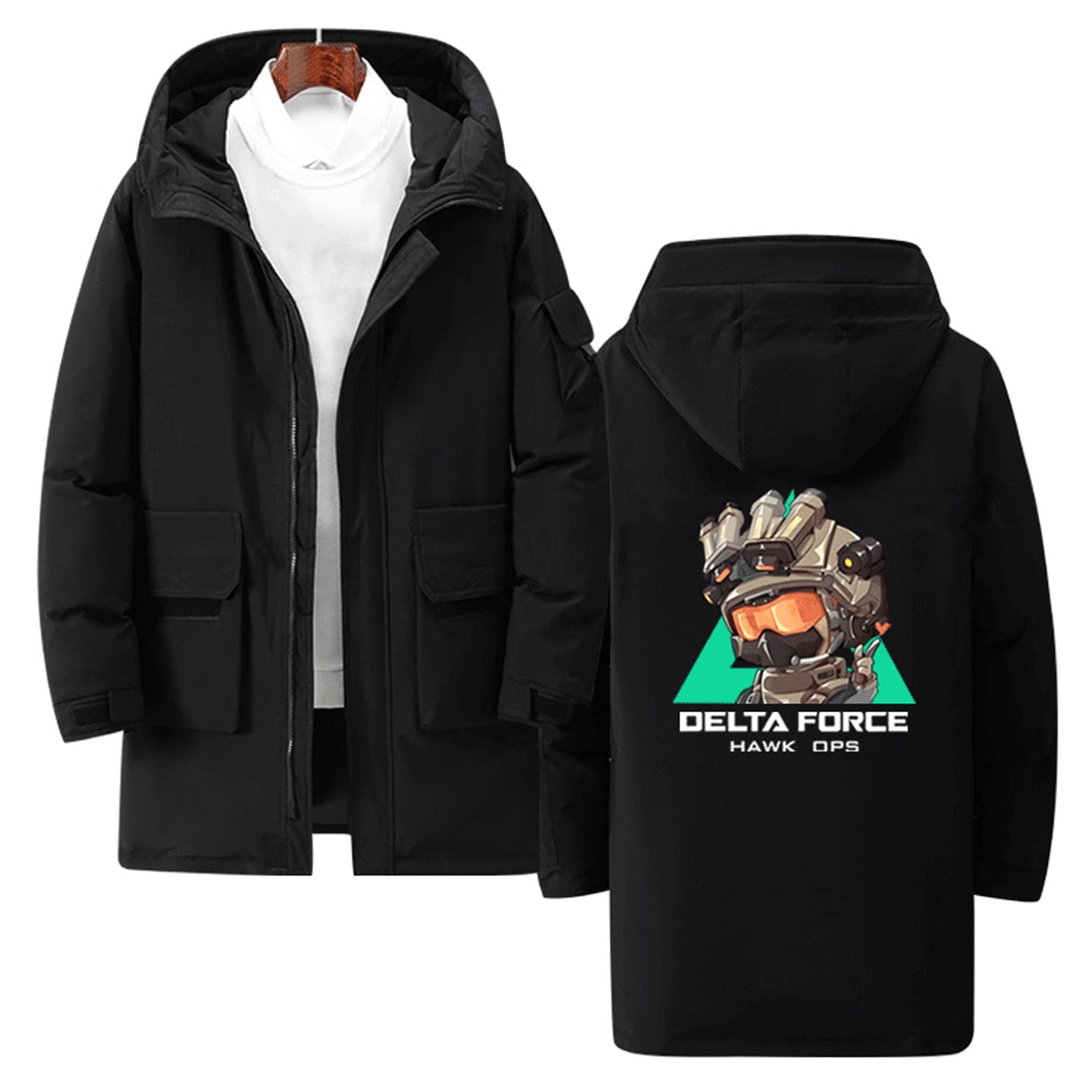 三角洲游戏行动威龙男女情侣可定制外套带帽款拉链羽绒服Q版周边