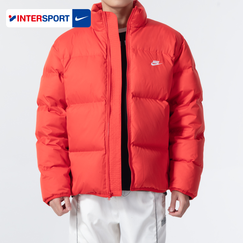 耐克男士红色立领羽绒服2025冬季外套针织休闲长裤运动套装两件套