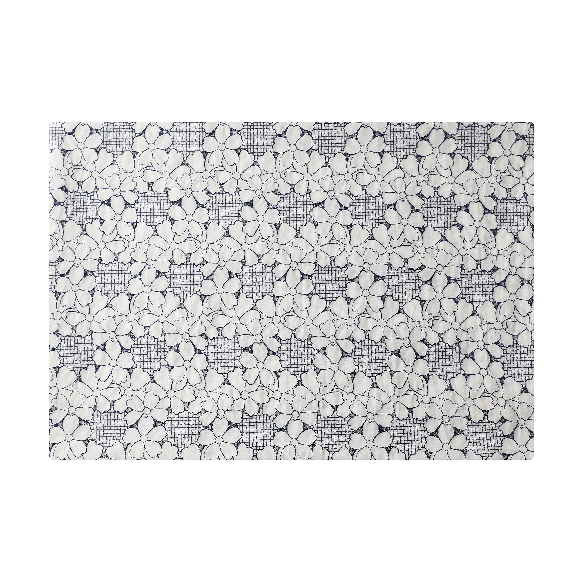 森系文艺风白底深蓝色碎花刺绣纯棉布料衬衣连衣裙童装服装面料