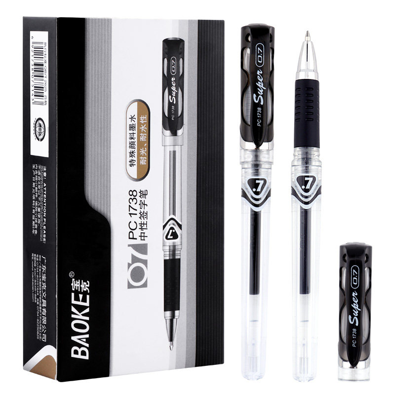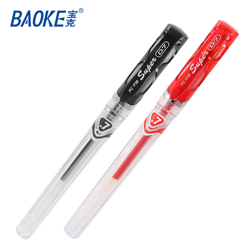 宝克PC1738中性笔练字笔粗碳素笔书写0.7mm黑色笔芯签字笔水笔商务办公红色加粗笔画签名笔12支装