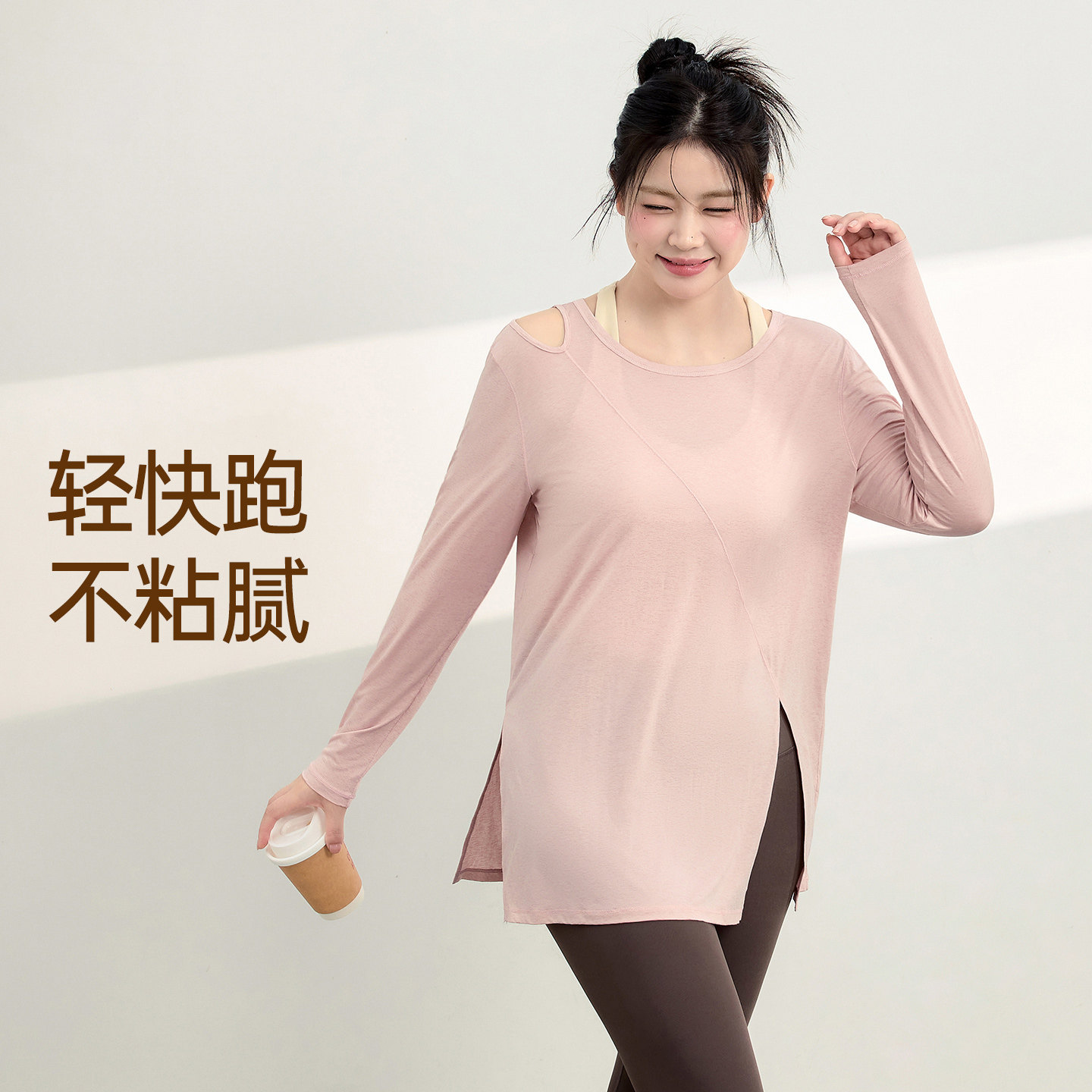 大码胖MM运动上衣女透气速干健身t恤跑步瑜伽服宽松罩衫长袖套装