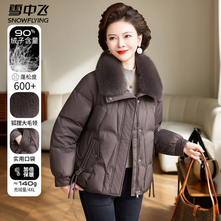 雪中飞羽绒服女短款中年妈妈狐狸毛领翻领冬装中老年新款减龄外套