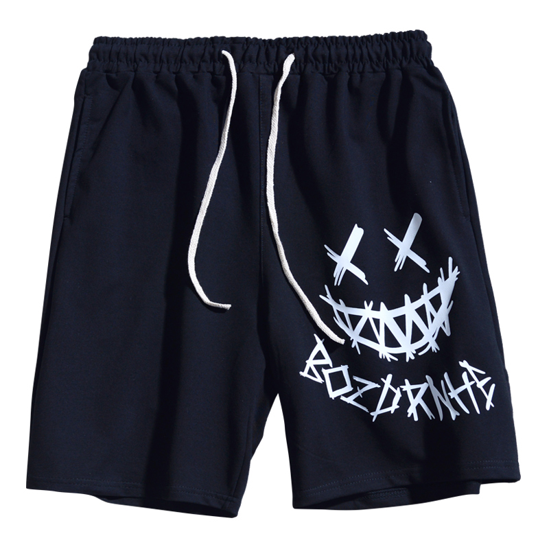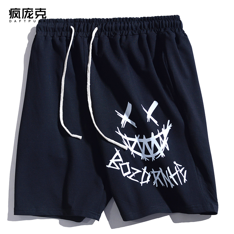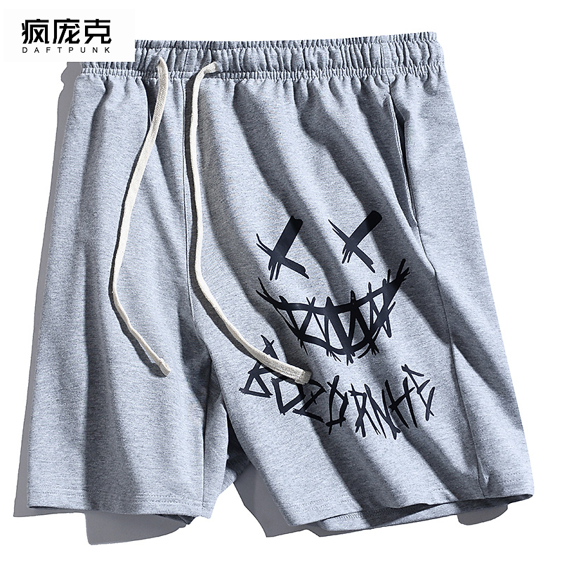 小恶魔笑脸短裤情侣夏季新款ins涂鸦字母潮流宽松休闲五分裤男女