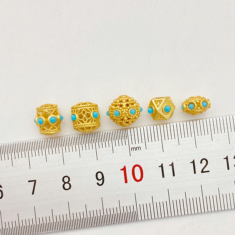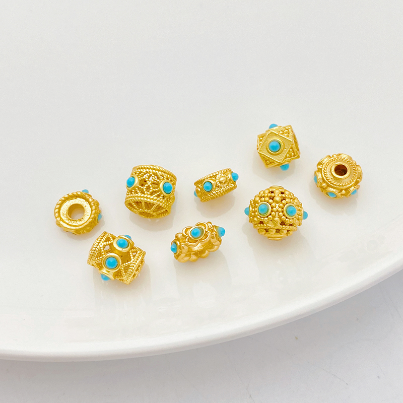古法金保色镶嵌绿松石散珠隔珠串珠手工diy手链项链饰品材料配件