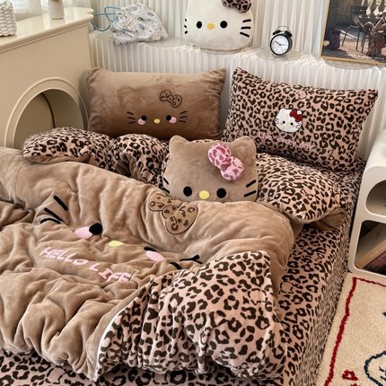 無绵丨可爱黑皮KT猫牛奶绒四件套