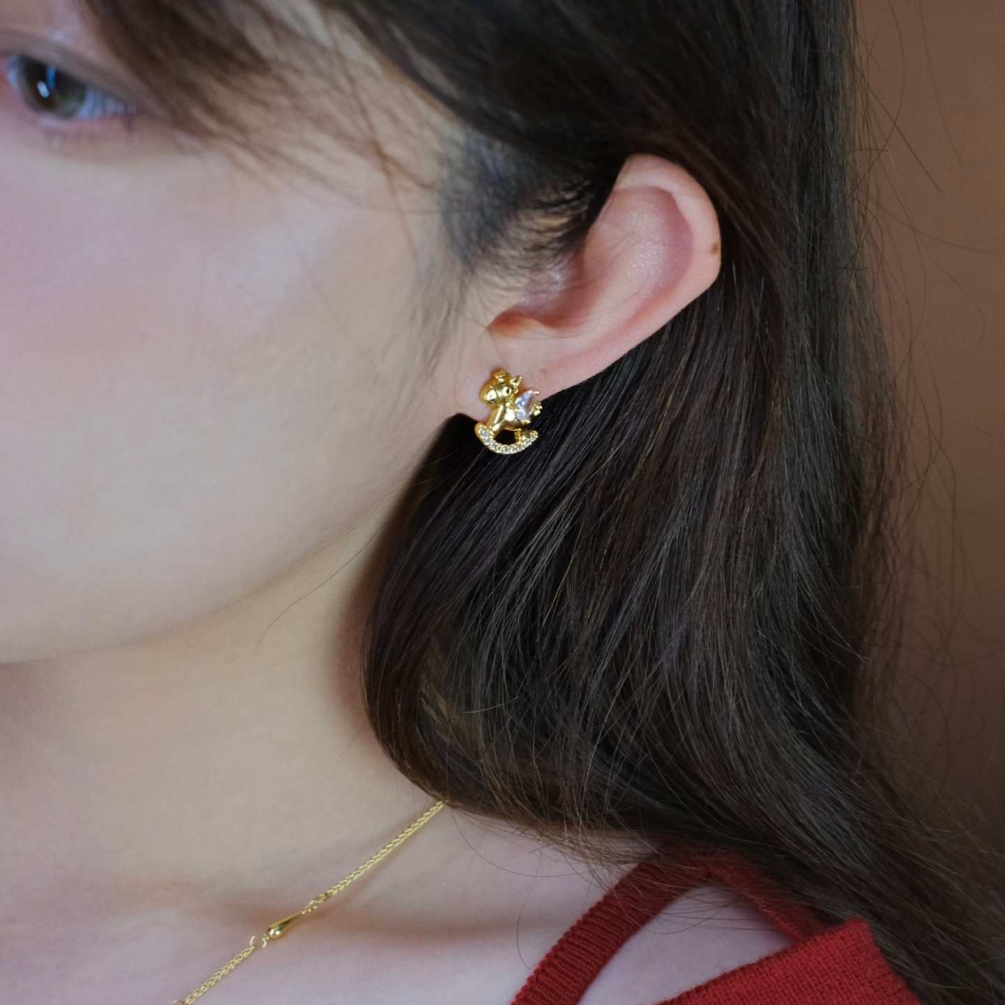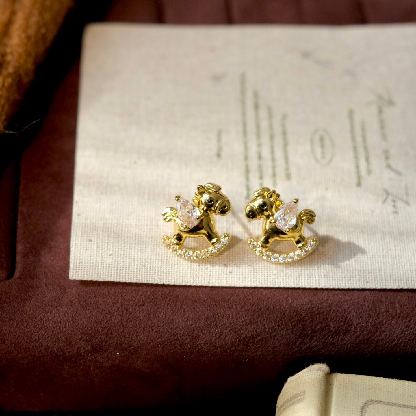 《小飞马》童趣精致可爱本命年摇摇马镶钻耳钉耳夹耳饰新年耳环女