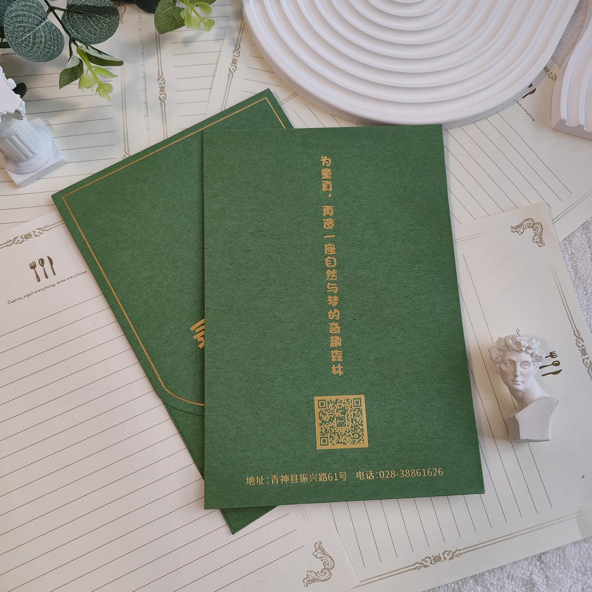 便当文创信封定制特种纸里纸墨绿色婚纱信封袋烫金LOGO高端邀请函