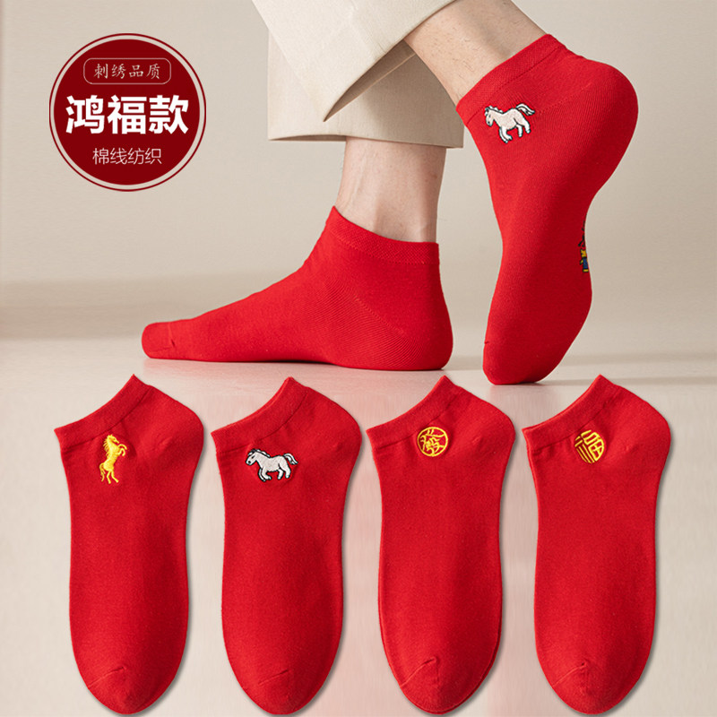 本命年红袜子属马年船袜短袜男款女袜情侣一对红色新年袜喜字结婚