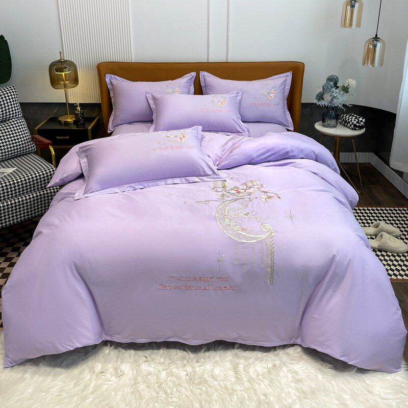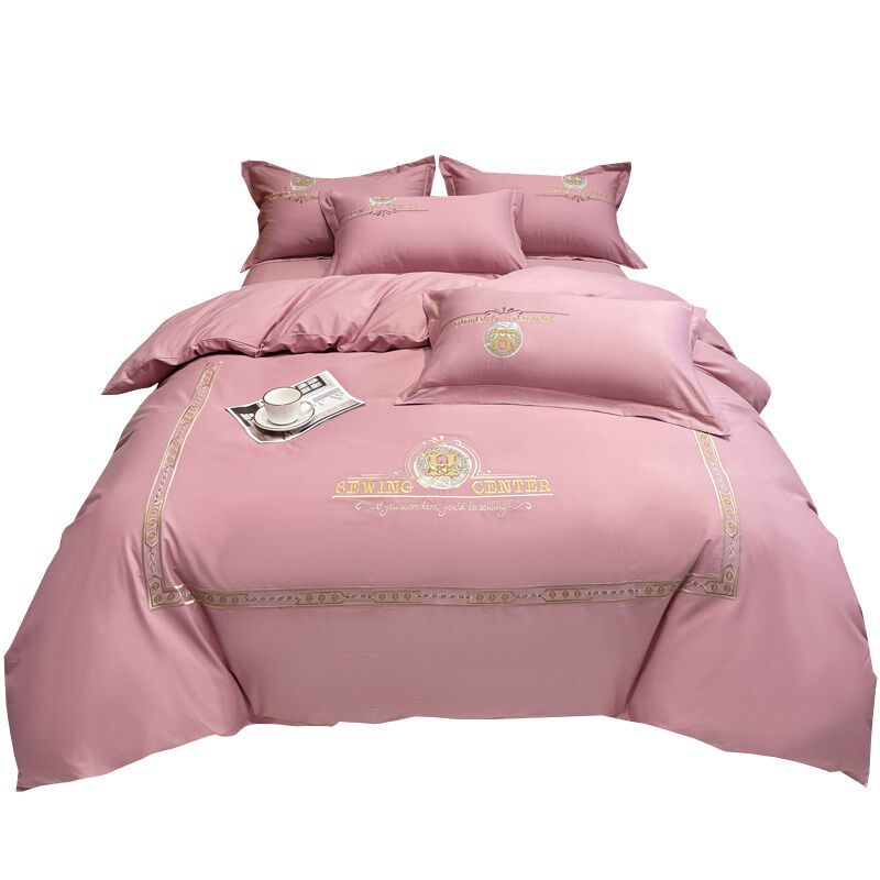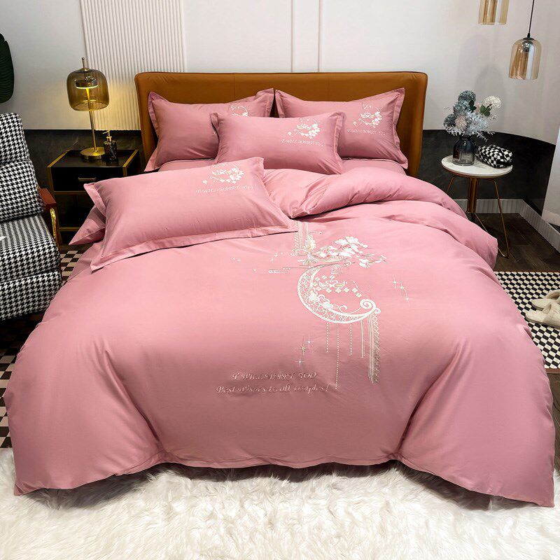 高档奢华纯棉全棉四件套纯棉10A0长绒棉床单被套纯色简约床上用品